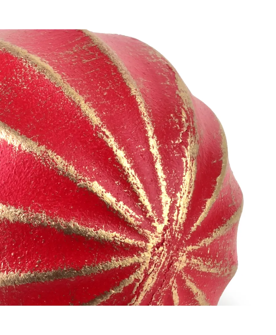 SAGGIO RED Kula dekoracyjna z MDF-u w kolorze czerwonym, wykończona w pionowe złote paski, to elegancki i nowoczesny element wystroju wnętrza. Jej forma łączy prostotę z geometrycznym rytmem, dzięki czemu może pasować zarówno do minimalistycznych, jak i bardziej klasycznych aranżacji. MDF, jako materiał, pozwala na precyzyjne frezowanie, co umożliwia uzyskanie delikatnych, równomiernych żłobień na powierzchni kuli właśnie w formie pionowych pasów. Czerwona kolorystyka nadaje jej lekkości i sprawia, że dobrze odbija światło, przez co może rozjaśniać przestrzeń, w której się znajduje. Tego typu dekoracja może być umieszczona na półce, komodzie lub jako centralny akcent na stole.
