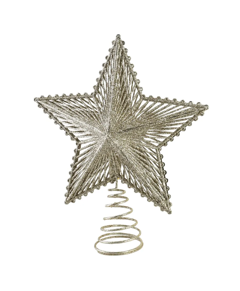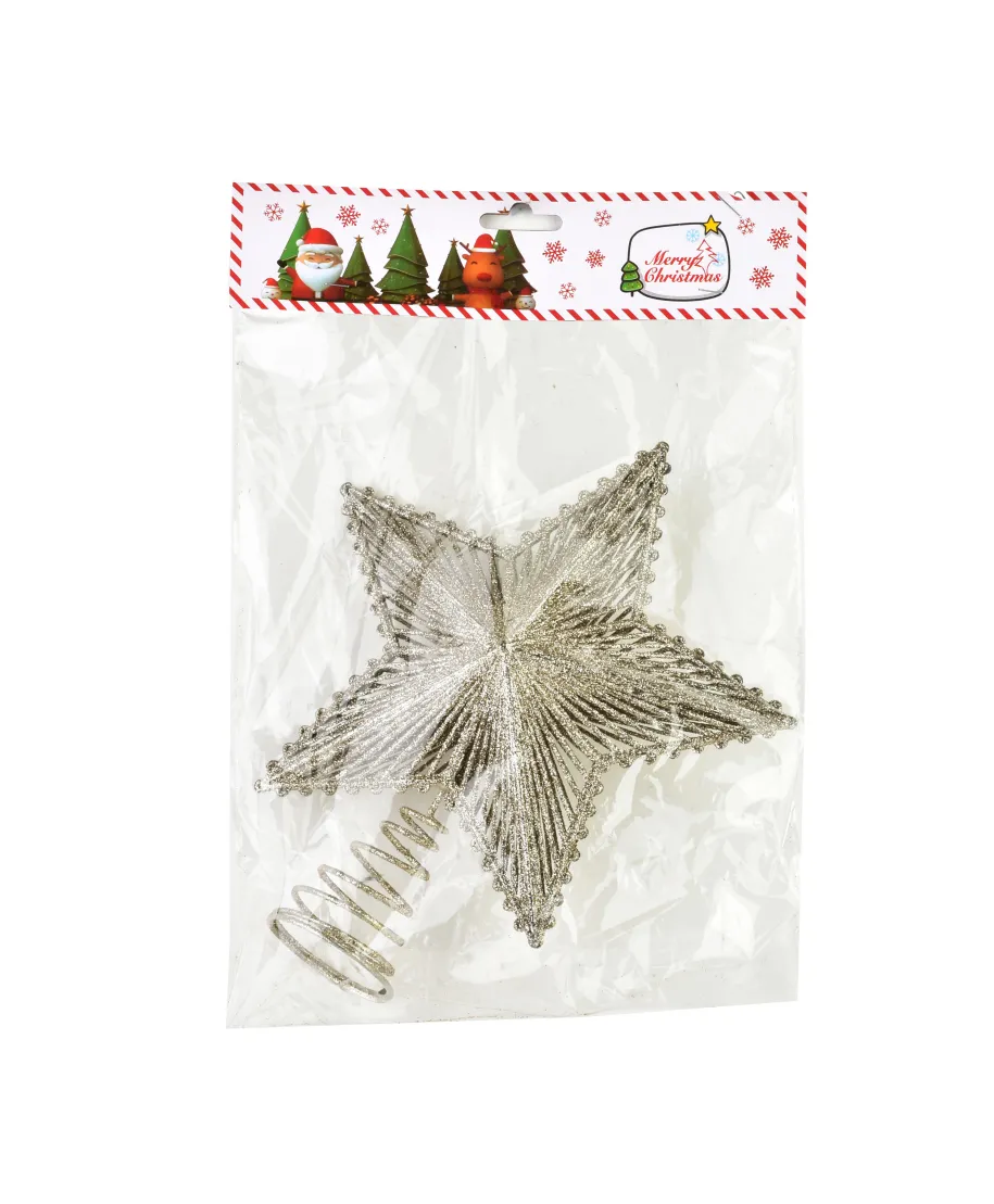 Gwiazda czubek SANTA LILA o wymiarach 19x23 cm to elegancka ozdoba choinkowa przeznaczona do umieszczenia na wierzchołku drzewka. Ma klasyczny kształt pięcioramiennej gwiazdy, często delikatnie wypukłej, co nadaje jej trójwymiarowy wygląd i podkreśla jej dekoracyjny charakter. Wykonana jest zazwyczaj z tworzywa sztucznego, wykończonego brokatem, lakierem perłowym lub metalizowaną folią, dzięki czemu pięknie mieni się w świetle choinkowych lampek.Gwiazda dostępna jest najczęściej w klasycznych kolorach świątecznych takich jak złoto, srebro, biel czy czerwień. Jej dolna część zakończona jest tuleją lub spiralą umożliwiającą łatwe i stabilne osadzenie na czubku choinki. Lekka konstrukcja sprawia, że nie obciąża gałązek, co jest istotne przy delikatniejszych drzewkach.SANTA LILA świetnie sprawdzi się zarówno w domowych aranżacjach, jak i w dekoracjach komercyjnych . w hotelach, witrynach sklepowych czy restauracjach. Łączy w sobie klasykę i subtelny blask, dzięki czemu staje się centralnym punktem świątecznego wystroju.