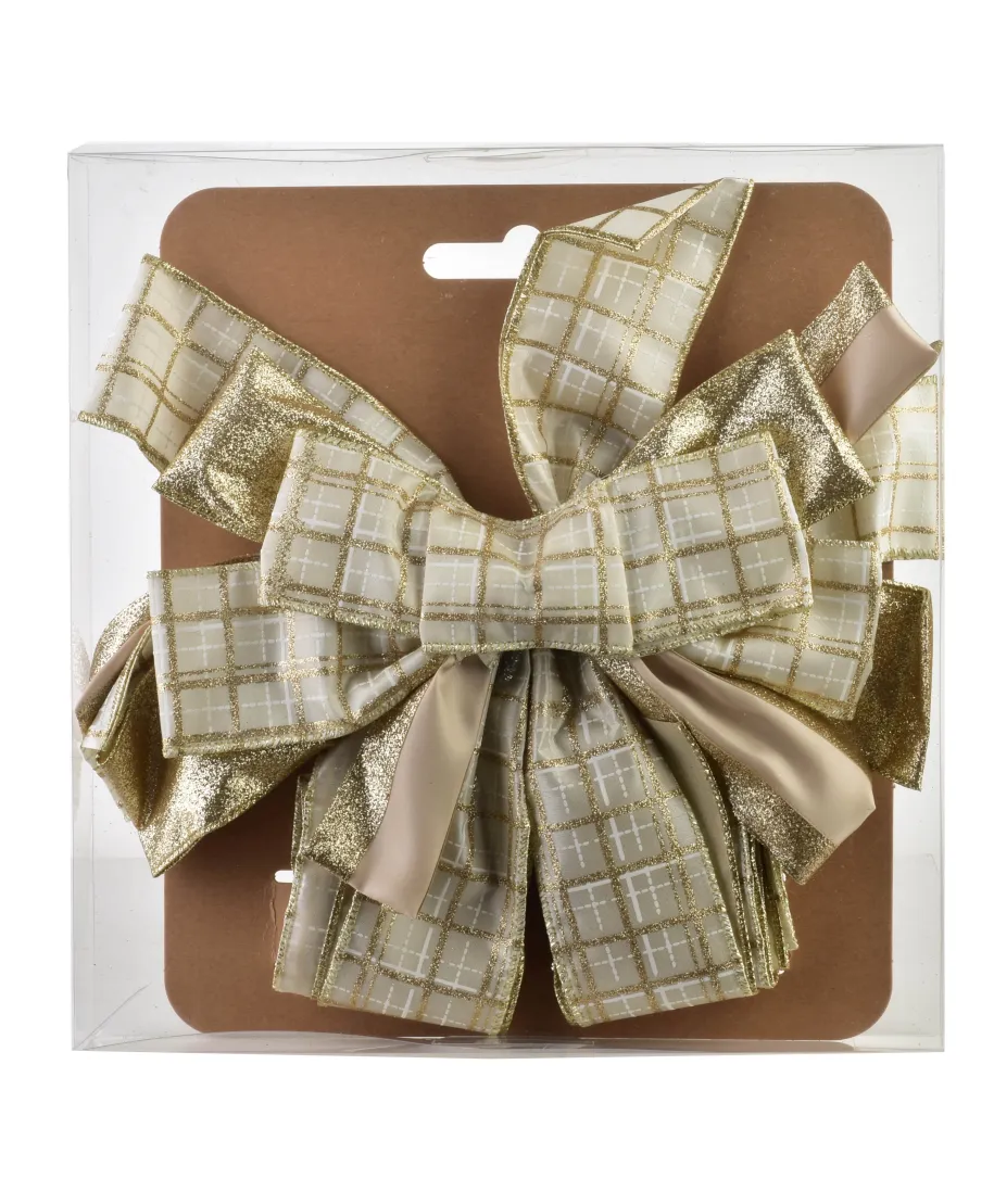 Kokarda SANTA LILA o wymiarach 32x130 cm w eleganckim beżowo-złotym odcieniu to wyrafinowana dekoracja, która wnosi do wnętrza ciepło, blask i świąteczną elegancję. Umieszczona na czubku choinki staje się stylowym akcentem, który przyciąga wzrok subtelnym połyskiem i dodaje drzewku wyjątkowego uroku. Połączenie stonowanego beżu ze złotymi detalami tworzy harmonijną i luksusową kompozycję, idealnie pasującą do klasycznych oraz nowoczesnych aranżacji w stylu glamour. Wykonana z wysokiej jakości materiału, kokarda zachowuje swój kształt i piękno przez wiele sezonów, podkreślając magiczny charakter każdego Bożego Narodzenia.zapakowana jednostkowo w pvc