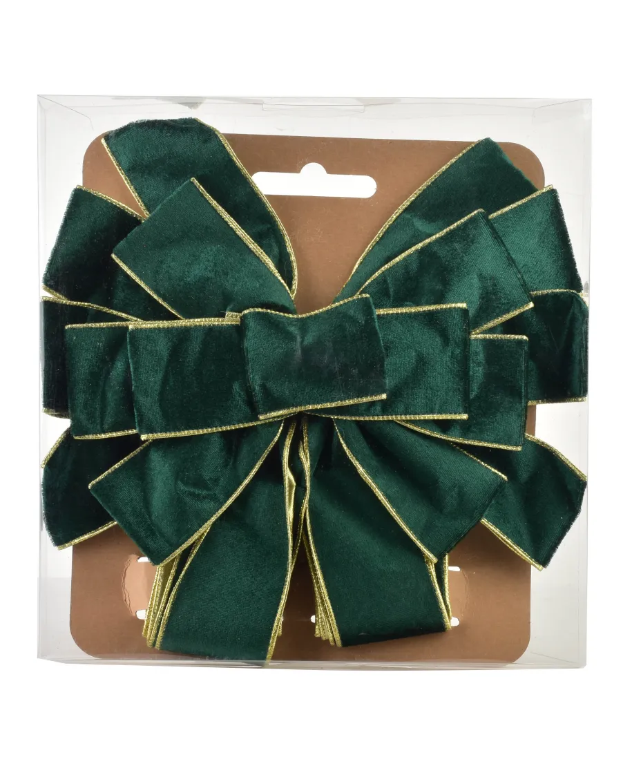 Kokarda SANTA LILA o wymiarach 32x130 cm w głębokim, butelkowozielonym odcieniu z elegancką, złotą obwódką to wyjątkowo stylowa dekoracja, która wnosi do wnętrza luksus i świąteczną głębię. Wykonana z miękkiego materiału o welwetowym wykończeniu, zachwyca szlachetnym wyglądem i subtelnym połyskiem. Złote wykończenie dodaje jej blasku i elegancji, dzięki czemu kokarda doskonale prezentuje się na czubku choinki, podkreślając wyjątkowy charakter świątecznej aranżacji. Idealna do wnętrz w stylu klasycznym, vintage czy glamour, stanowi nie tylko ozdobę, ale i wyrafinowany akcent. Trwały materiał sprawia, że kokarda zachowa swoją formę i piękno na wiele sezonów, stając się symbolem eleganckiego Bożego Narodzenia.