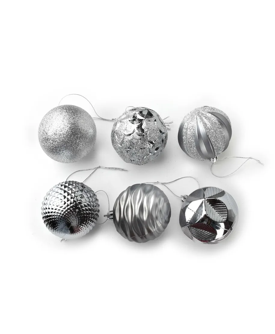 Komplet 12 bombek SANTA LILA to klasyczna propozycja świątecznych dekoracji w eleganckim srebrnym kolorze. Każda bombka ma kształt idealnej kuli o średnicy 6 cm i została wykonana z lekkiego tworzywa sztucznego, które zapewnia trwałość i bezpieczeństwo użytkowania. Dzięki połyskującemu wykończeniu i uniwersalnej formie doskonale komponują się z różnymi stylami dekoracji choinki . od nowoczesnych po tradycyjne. Zestaw zapakowany jest w estetyczne opakowanie, idealne również na prezent.
