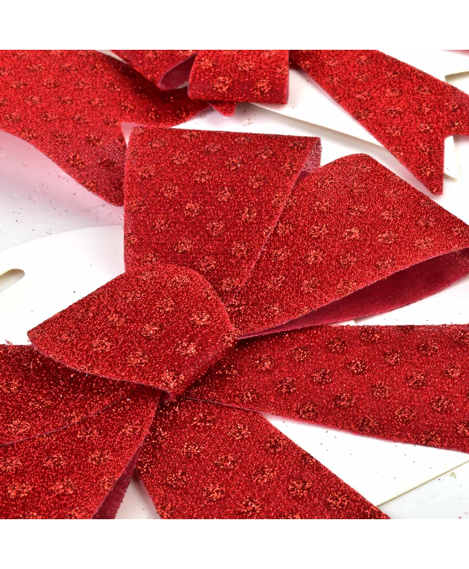 Komplet 2 kokard świątecznych SANTA LILA o wymiarach 15 15,5 cm w kolorze czerwonym to wyrazista i elegancka dekoracja, idealna do stworzenia efektownej, bożonarodzeniowej aranżacji. Kokardy wykonane są z tworzywa imitującego tkaninę, ostrukturze przypominającej drobny splot, co nadaje im tekstylny, miękki wygląd, przy jednoczesnym zachowaniu formy i trwałości. Całkowicie czerwone wykończenie, jednolite lub z lekkim metalicznym połyskiem, sprawia, że kokardy pięknie odbijająświatło i dodają dekoracjom luksusowego charakteru. Ten ponadczasowy kolor doskonale komponuje się z tradycyjnymi oraz nowoczesnymi aranżacjami świątecznymi, wprowadzając do wnętrza blask i elegancję. Dzięki lekkiej konstrukcji i wygodnemu systemowi mocowania (np. cienki drucik lub tasiemka), kokardy łatwo przymocować do choinki, wieńców, stroików, poręczy, prezentów lub jako element dekoracyjny wnętrza. Zestaw 2 sztuk zapakowany jest w estetyczną folię, co ułatwia przechowywanie po sezonie i sprawia, że świetnie nadaje się również na prezent.Komplet złotych kokard SANTA LILA 15x18 cm to idealny wybór dla osób poszukujących eleganckich, gotowych do użycia ozdób, które dodadzą świątecznym dekoracjom szyku, blasku i wyjątkowego uroku.