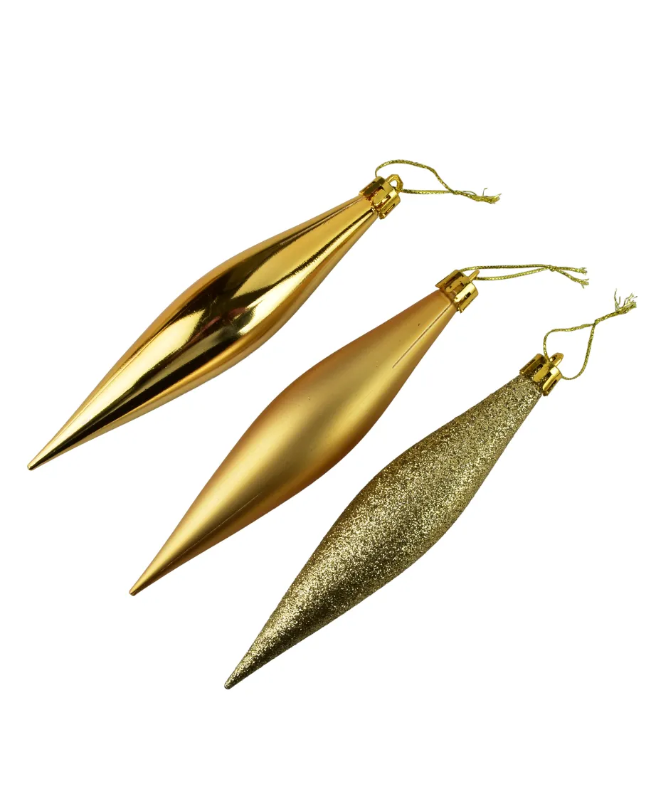 Komplet 8 bombek w kształcie sopla . złoty blask Twojej choinki Stwórz magiczną atmosferę świąt dzięki zestawowi 8 bombek w kształcie sopla, wykonanych z trwałego PVC i wykończonych w eleganckim, złotym kolorze. Te lekkie,a zarazem efektowne ozdoby nadadzą Twojemu drzewku wyjątkowego charakteru i blasku. Korzyści, które docenisz: Złoty kolor . symbol świątecznego luksusu Klasyczny, ciepły odcień złota pięknie odbija światło lampek choinkowych i tworzyprzytulny klimat. Kształt sopla . subtelna elegancja Smukłe, zwisające bombki w formie sopli optycznie wydłużają choinkę i dodają dekoracji lekkości. Wytrzymałe PVC . bezpieczne i praktyczne Idealne dla rodzin z dziećmi i zwierzętami . lekkie, nietłukące się i odporne na uszkodzenia. Zestaw 8 sztuk . gotowa dekoracja Wystarczy kilka chwil, by nadać drzewku spójny, elegancki wygląd. Uniwersalne mocowanie Każda bombka wyposażona w zawieszkę . gotowa do powieszenia zaraz po wyjęciu z opakowania.