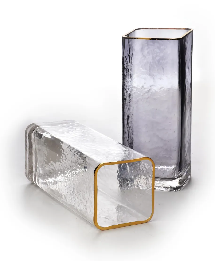 Wazon szklany Serenite marki MONDEX since 1986r. Posiada prosty kubikowy kształt\tuby ze zdobieniem w górnej części w złoty pasek. W dzisiejszych czasach wazon\to nie tylko naczynie na kwiaty, ale także wyjątkowa ozdoba wnętrza.\Świeże cięte\kwiaty, a także sztuczne sprawiają, że wnętrze jest przyjemniejsze i w\niektórych\przypadkach może mieć duży wpływ na nasze nastawienie. Kwiaty są zawsze dobrym\pomysłem na prezent, a na pewno sprawią dużo radości wręczone wraz z wazonem.\Kolekcja SERENITE została stworzona aby umilać codzienność, wyjątkowy kształt\wazonów, a także ich kolorystyka świetnie wpisują się w trendy, a zarazem są\ponadczasowe. Nowe szkło do domu to zawsze dobry pomysł.Tak niewiele trzeba, aby\stół, komoda czy szafka nocna nabrały innego wymiaru i cieszyły oko.Warto zawsze\łączyć poszczególne elementy kolekcji ze sobą.\\wymiary: 10x10xh24,5cm waga: 1,022kg zapakowany jendostkowo w brązowy karton: 10,5x10,5xh25cm\średnica wewnętrzna otworu: 8,7cm\