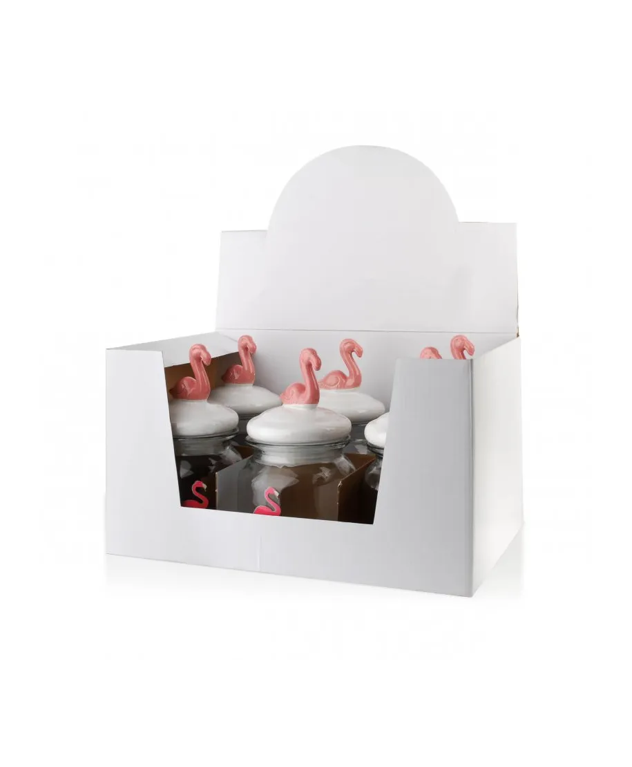 Modny słój z serii FLAMINGO. Posiada ceramiczną pokrywę z flamingiem oraz kalkę przepięknie zdobiącą powierzchnię szkła. Nada niepowtarzalny charakter Twojemu wnętrzu. Pojemność: 600 ml