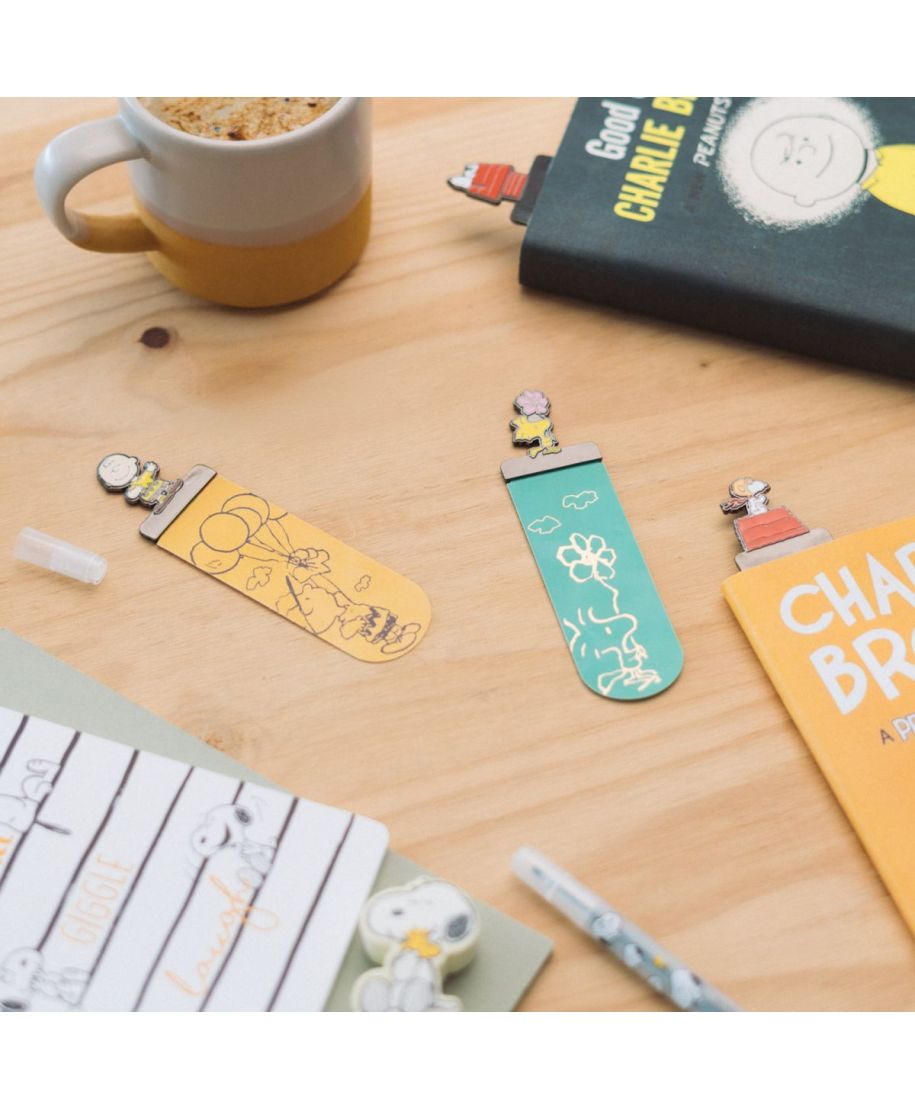 Snoopy - 4 zakładki do książek Numer katalogowy: SET4M004 Producent: Erik Wymiary: 3,5x13,5 cm Zestaw 4 zakładek do książek Snoopy to praktyczny dodatek dla osób, które lubią czytać i jednocześnie cenią estetyczne, popkulturowe akcesoria. W komplecie znajdują się cztery różne wzory z bohaterami Peanuts, dzięki czemu możesz dopasować zakładkę do nastroju lub używać kilku naraz - na przykład do rozdziałów, notatek albo ulubionych fragmentów. Dekoracyjna część z postacią wystaje ponad krawędź książki, co ułatwia szybkie odnalezienie strony bez przewracania kartek. Smukły format dobrze sprawdza się zarówno w książkach, jak i w zeszytach, planerach czy notesach, pomagając utrzymać porządek w codziennych zapiskach. To drobny, ale bardzo przyjemny element, który ożywia czytanie i sprawia, że nawet zwykła lektura wygląda bardziej stylowo. Szczegóły techniczne Rodzaj: zakładki do książek Ilość: 4 sztuki Motyw: Snoopy (Peanuts) Wymiary: 3,5x13,5 cm Oryginalny produkt na oficjalnej licencji Peanuts.