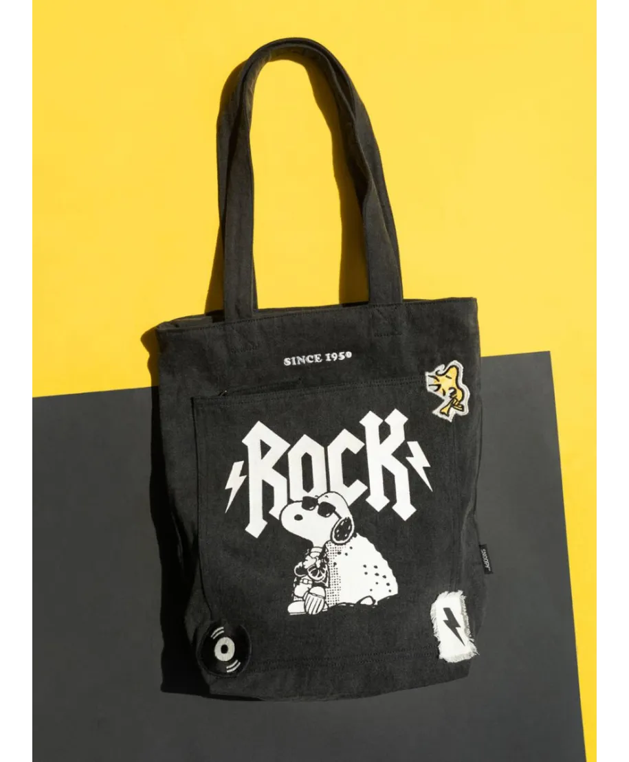 Płócienna torba Snoopy Rock Eko torba bawełniana to alternatywa dlareklamówek jednorazowych. Zadbaj o nasze środowisko i kup bawełnianą torbę, która bez problemu pomieści Twoje zakupy. Jest solidna i wytrzymała, wykonana w 100% z bawełny. Posiada długie uchwyty. To oryginalny i unikalny gadżet posiadający licencję producenta. Szczegóły techniczne: Wymiary na płasko:37x41x10 cm