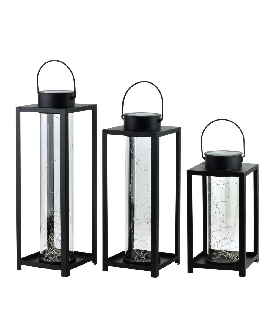 SOKKE Latarnia solarna 15x15x40cm. Nowoczesna latarnia solarna SOKKE to stylowe i funkcjonalne oświetlenie dekoracyjne, idealne do ogrodu, na taras lub balkon. Wykonana z metalu, charakteryzuje się prostą, elegancką formą, która z łatwością dopasuje się do różnych aranżacji przestrzeni zewnętrznych.Wewnątrz latarni znajduje się szklana tuba z umieszczonym w niej łańcuchem LED, tworzącym przyjemne, nastrojowe światło po zmroku. Zintegrowany panel solarny, po naładowaniu energią słoneczną lub światłem dziennym, umożliwia świecenie nawet do 5 godzin, bez konieczności podłączania do prądu.Latarnia jest pakowana jednostkowo w solidny brązowy karton, co ułatwia transport oraz sprawia, że doskonale nadaje się również na prezent. Dzięki wymiarom 151540cm latarnia świetnie prezentuje się ustawiona przy ścieżkach, na tarasie, balkonie lub wśród zieleni, wprowadzając do otoczenia ciepły i przytulny klimat.SOKKE to połączenie metalowej trwałości, subtelnego światła LED i ekologicznego zasilania, które podkreśli charakter każdej przestrzeni.