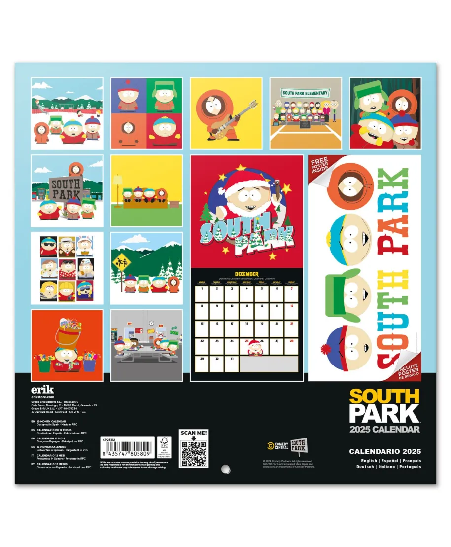 South Park oficjalny kalendarz na ścianę na 2025rok Oryginalny i licencjonowany kalendarz, posiada 12 rozkładanych stron o wymiarach 30x60 cm. Na każdej z kart znajduje się duża fotografiaoraz czytelne kalendarium z miejscem na notatki. W kalendarzu znajduje się 12 unikalnych zdjęć dla każdego miesiąca. Okładki wykonane są z papieru powlekanego matowego i laminowanego o gramaturze 250 g/m?, wnętrze z papieru powlekanego matowego o gramaturze 150 g/m?. Nagłówki są w 6 językach: angielski, hiszpański, francuski, niemiecki, włoski i portugalski Oprawa zszywkowa. Złożony kalendarz 30x30 cm. Rozłożony kalendarz 30x60 cm. Zawiera otwór 5 mm do zawieszenia na ścianie.