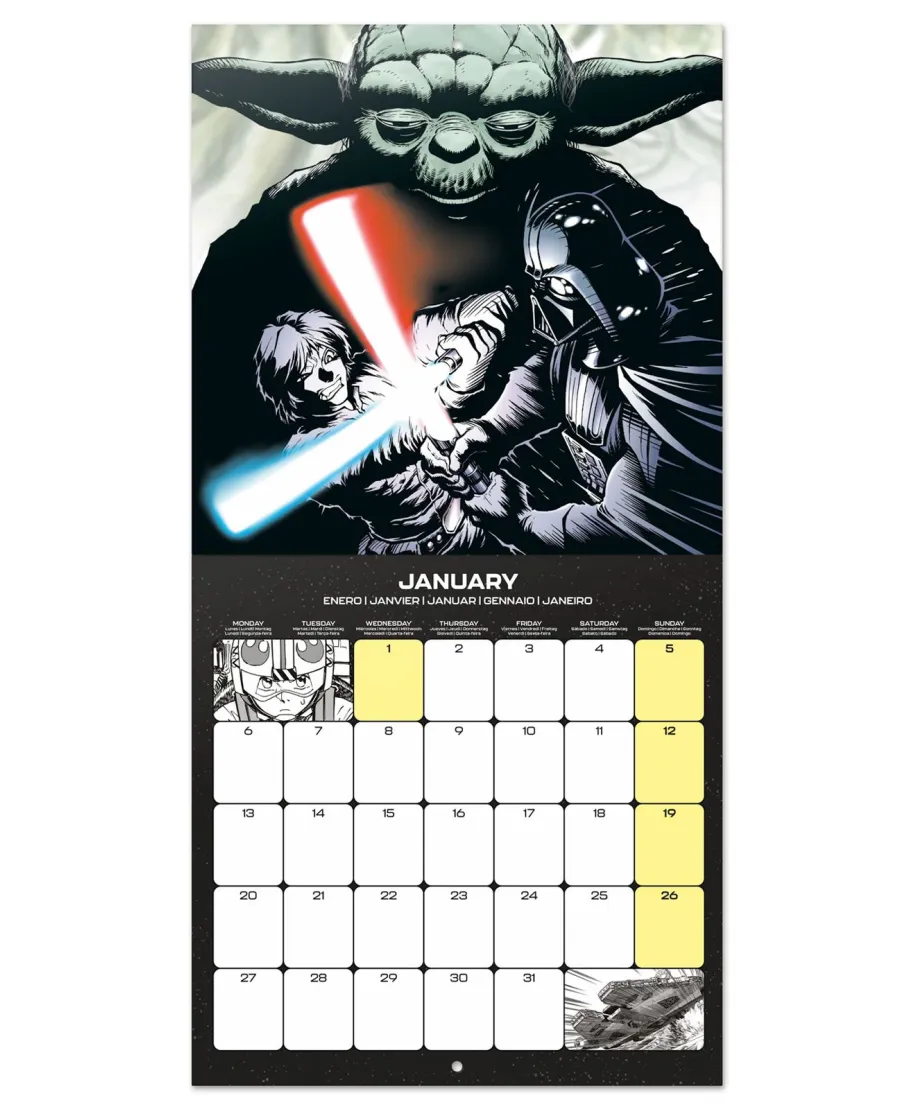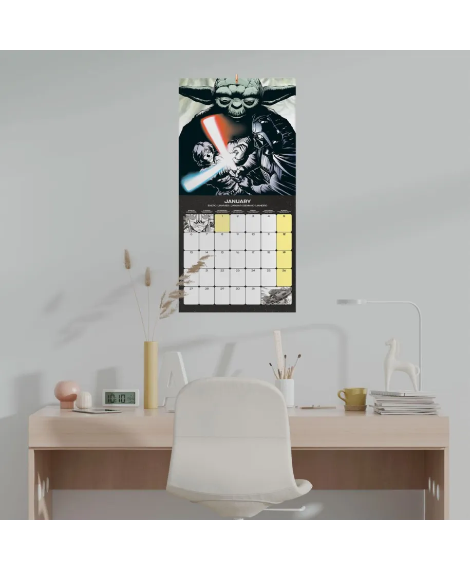 Star Wars Classic oficjalny kalendarz na ścianę na 2025rok Oryginalny i licencjonowany kalendarz, posiada 12 rozkładanych stron o wymiarach 30x60 cm. Na każdej z kart znajduje się duża fotografiaoraz czytelne kalendarium z miejscem na notatki. W kalendarzu znajduje się 12 unikalnych zdjęć dla każdego miesiąca. Okładki wykonane są z papieru powlekanego matowego i laminowanego o gramaturze 250 g/m, wnętrze z papieru powlekanego matowego o gramaturze 150 g/m. Nagłówki są w 6 językach: angielski, hiszpański, francuski, niemiecki, włoski i portugalski Oprawa zszywkowa. Złożony kalendarz 30x30 cm. Rozłożony kalendarz 30x60 cm. Zawiera otwór 5 mm do zawieszenia na ścianie.