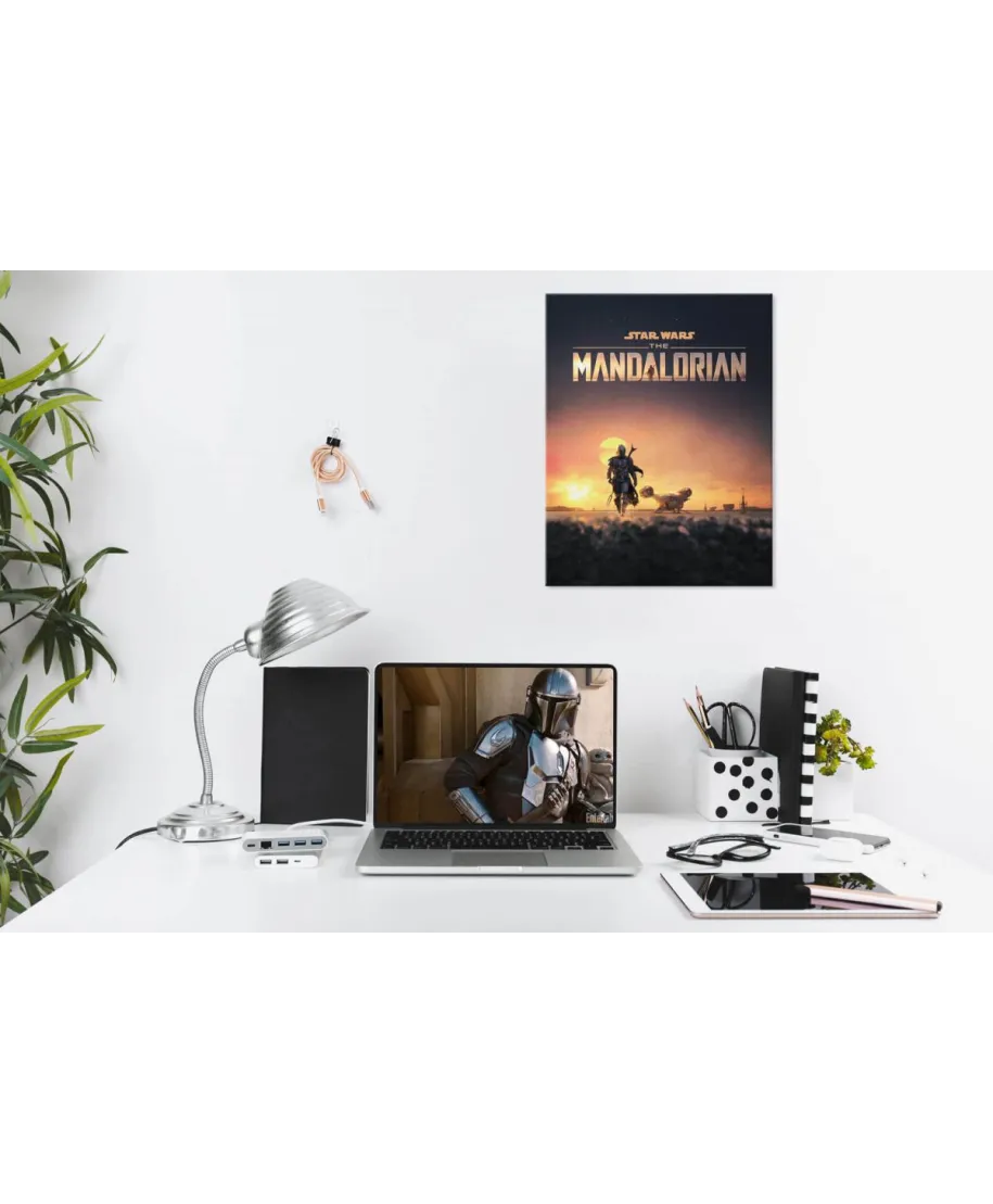 Star Wars The Mandalorian Dusk - obraz na płótnie Oryginalny i licencjonowany obraz na płótnie idealny na każdą ścianę. Nasze obrazy wyróżniają: Fantastyczne barwy Wysokie nasycenie barw i ostrość, kolory utrzymują się przez długie lata. Płótno wysokiej jakości Płótno bawełniane 300g/m2 jest trwałe i mocne, jego struktura jest naturalna. Trwałe kolory, Dodatkowo lakierowana powierzchnia sprawia, że kolory są żywe przez dziesięciolecia. Solidna rama, Wykonana jest z naturalnego, sosnowego drewna, jest mocna i gruba a obraz solidny i wytrzymały. Zadrukowane boki, obrazy posiadają zadrukowane boki, nie potrzebują żadnej dodatkowej oprawy. Szczegóły techniczne: wydruk na płótnie bawełnianym 300g/m2 sosnowe krosna o grubości 2 cm i szerokości 3,5 cm druk cyfrowy