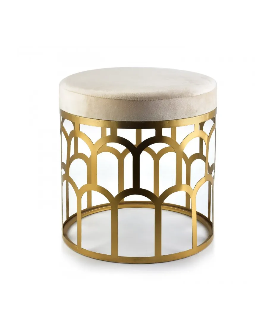 Stołek beżowo złoty - Puf dekoracyjny Margie 36x38cm