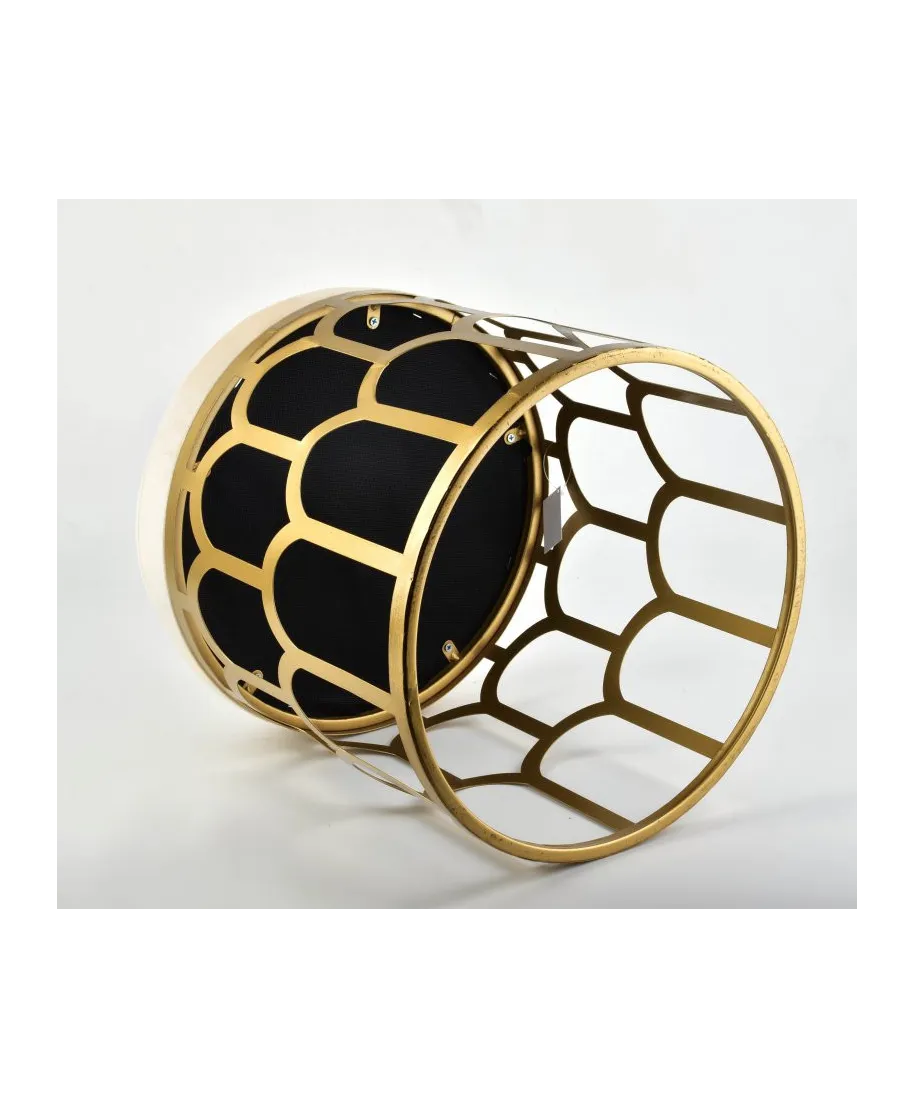 Puf umieszczony jest na metalowym, złotym stelażu.