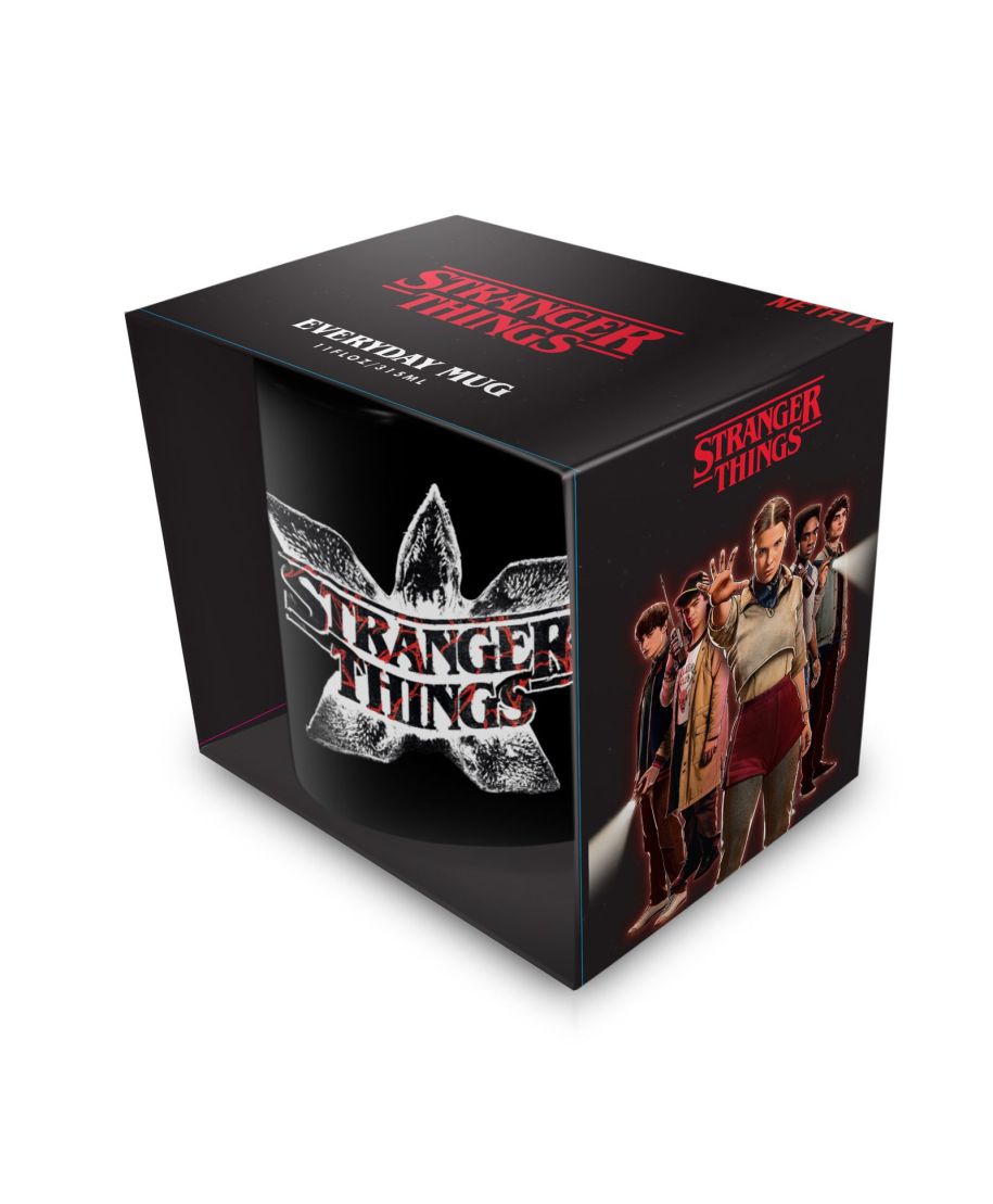 Stranger Things Demogorgon Logo - czarny kubek Numer katalogowy: MGB2403980 Producent: Pyramid International Pojemność: 315 ml Czarny kubek ceramiczny z uchem ozdobiony został mocną grafiką nawiązującą do serialu Stranger Things. Jasny nadruk z logo i motywem Demogorgona świetnie kontrastuje z czarnym tłem, dzięki czemu całość wygląda naprawdę wyraziście. Model ma klasyczny kształt, więc dobrze sprawdza się przy codziennym użytkowaniu. Pojemność 315 ml pasuje do kawy, herbaty i innych ciepłych napojów. To kubek z mroczniejszym klimatem, który od razu budzi skojarzenia z Upside Down i charakterem całej serii. Rodzaj: czarny kubek ceramiczny z uchem Motyw: Stranger Things Pojemność: 315 ml Oryginalny produkt na oficjalnej licencji Stranger Things.
