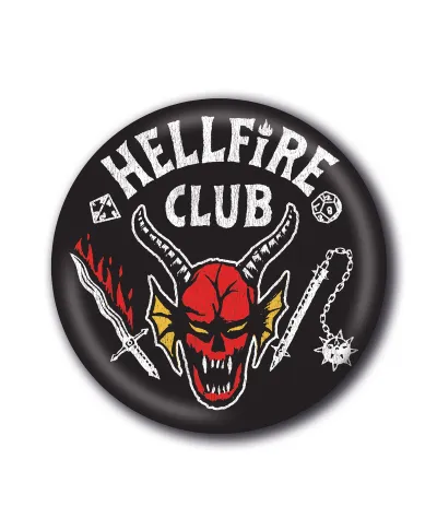 Stranger Things Hellfire Club Black - przypinka Przypinka inspirowana kultowym klubem Hellfire z serialu "Stranger Things". Świetny dodatek dla fanów tego niezwykłego świata, którzy chcą pokazać swoje zamiłowanie do serialu. Wykonana z plastiku, lekka i trwała, z klasycznym zapięciem na agrafkę, świetnie sprawdzi się na torbie, kurtce lub plecaku. Szczegóły techniczne Materiał: plastik Zapięcie: agrafka Średnica: 2,5 cm Licencja: oficjalna "Stranger Things" Licencjonowany produkt W 100% oryginalny, licencjonowany produkt, doskonały wybór na prezent. Kupując, wspierasz oficjalnych twórców i producentów.