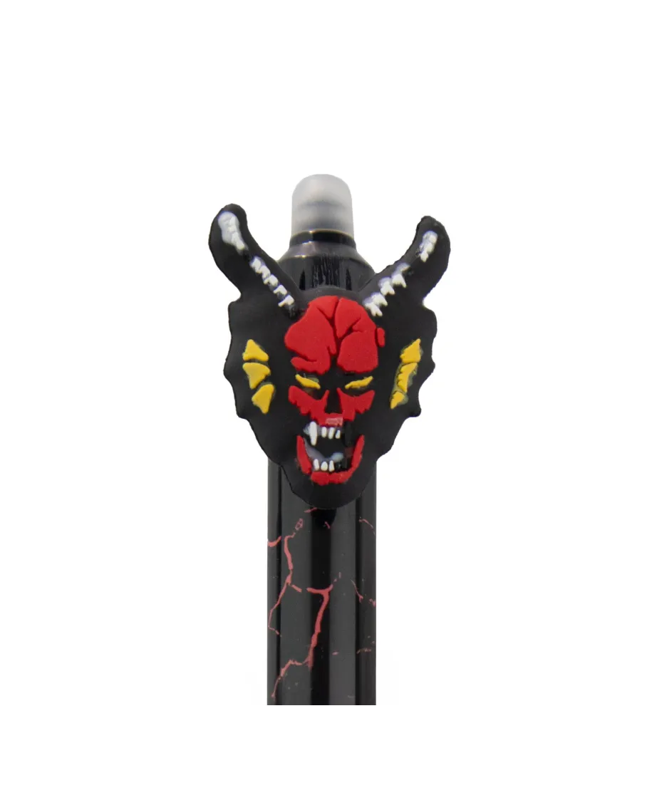 Długopis zmywalny Stranger Things Hellfire Face Długopis z grafiką twarzy demona z Klubu Hellfire. Klikany, z niebieskim wkładem i gumką idealny do notatek i jako kolekcjonerski dodatek dla fana Stranger Things. Szczegóły techniczne Kolor tuszu: niebieski Końcówka: gumka Mechanizm: klik Motyw: Hellfire Face W 100% licencjonowany produkt Stranger Things.