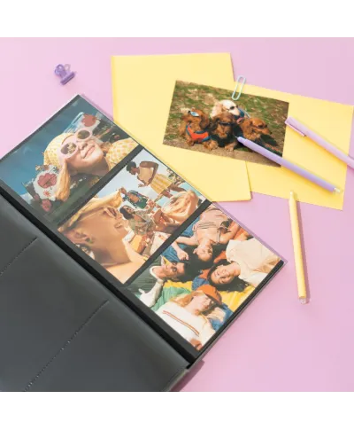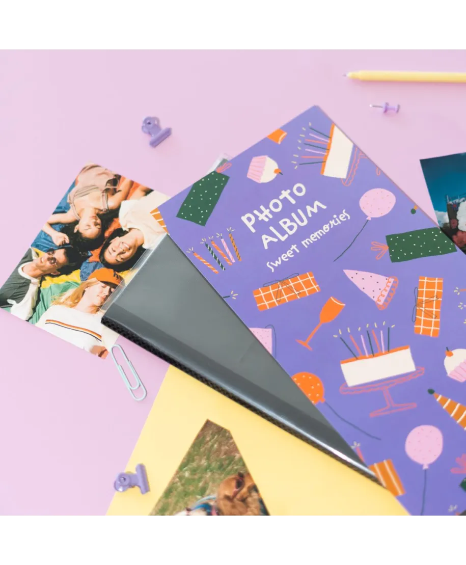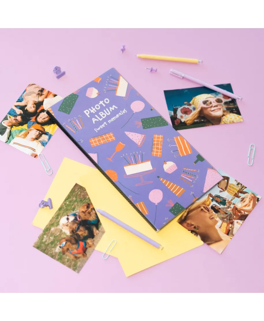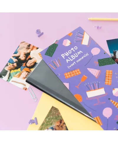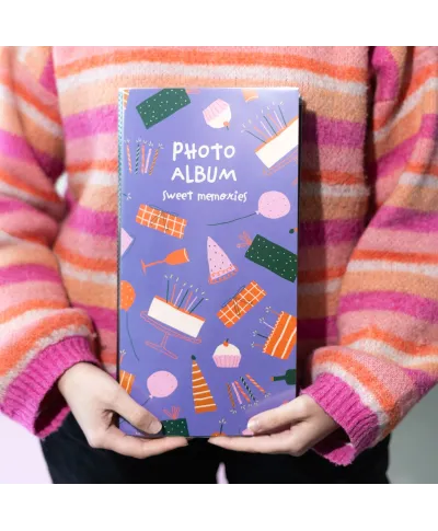 Sweet Memories - Album na zdjęcia Album na zdjęcia w miękkiej oprawie zabezpieczony foliową obwolutą. Jego strony posiadają koszulkę z folii, która ułatwia umieszczanie fotografii. Album posiada 32 strony, na których umieścić możesz96 zdjęć w rozmiarze: 10x15 cm 9x13 cm INSTAX oraz POLAROID Szczegóły techniczne: Wymiary zewnętrzne: 17x33 cm Okładka: miękka, papierowa Karty: miękkie, papierowe, kieszenie Rodzaj albumu: zdjęcia wsuwane Wykończenie albumu: klejony Kolor kart: ecru Oryginalny design: Elegancki album, doskonały do przechowywania najważniejszych wspomnień.