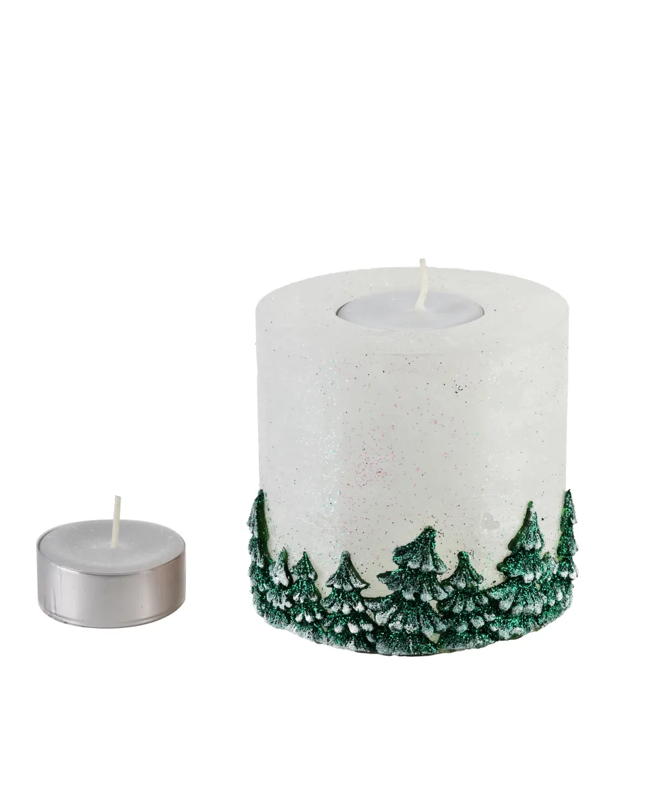 ŚWIECA LAMPION WALEC LAS BIAŁO ZIELONY 120