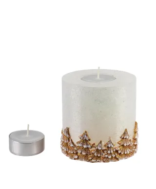 ŚWIECA LAMPION WALEC LAS BIAŁO ZŁOTY 120