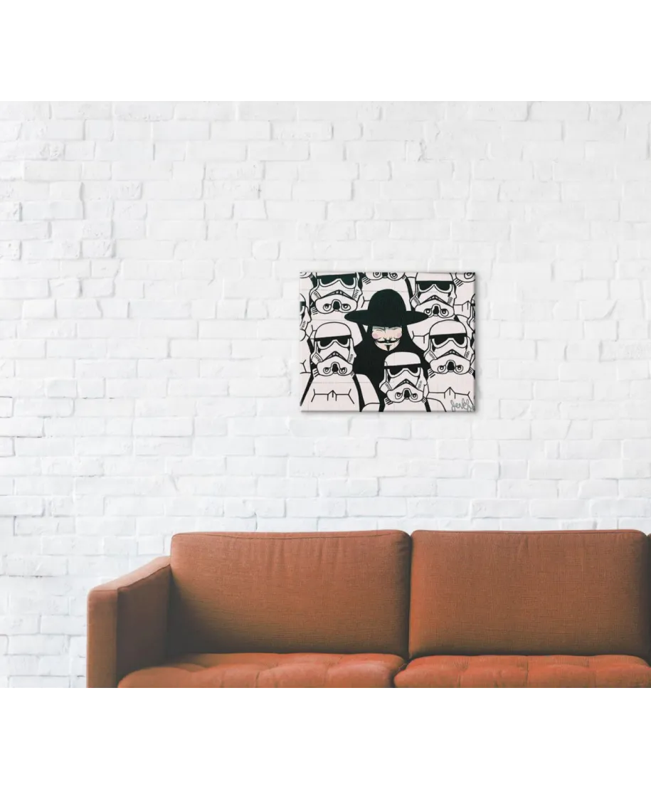 Oryginalny obraz na płótnieSzturmowiec i Vendetta Oryginalny i licencjonowany obraz na płótnie idealny na każdą ścianę. Nasze obrazy wyróżniają: Fantastyczne barwy Wysokie nasycenie barw i ostrość, kolory utrzymują się przez długie lata. Płótno wysokiej jakości Płótno poliestrowe 300g/m2 jest trwałe i mocne, jego struktura jest naturalna. Trwałe kolory, Dodatkowo lakierowana powierzchnia sprawia, że kolory są żywe przez dziesięciolecia. Solidna rama, Wykonana jest z naturalnego, sosnowego drewna, jest mocna i gruba a obraz solidny i wytrzymały. Zadrukowane boki, obrazy posiadają zadrukowane boki, nie potrzebują żadnej dodatkowej oprawy. Szczegóły techniczne: wydruk na płótnie poliestrowym 220g/m2 sosnowe krosna o grubości 2 cm i szerokości 3,5 cm druk cyfrowy