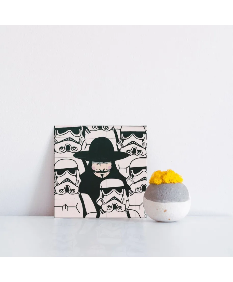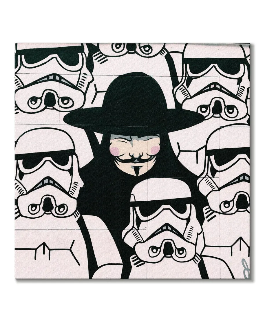 Oryginalny obraz na płótnieSzturmowiec i Vendetta Oryginalny i licencjonowany obraz na płótnie idealny na każdą ścianę. Nasze obrazy wyróżniają: Fantastyczne barwy Wysokie nasycenie barw i ostrość, kolory utrzymują się przez długie lata. Płótno wysokiej jakości Płótno bawełniane 300g/m2 jest trwałe i mocne, jego struktura jest naturalna. Trwałe kolory, Dodatkowo lakierowana powierzchnia sprawia, że kolory są żywe przez dziesięciolecia. Solidna rama, Wykonana jest z naturalnego, sosnowego drewna, jest mocna i gruba a obraz solidny i wytrzymały. Zadrukowane boki, obrazy posiadają zadrukowane boki, nie potrzebują żadnej dodatkowej oprawy. Szczegóły techniczne: wydruk na płótnie bawełnianym 300g/m2 sosnowe krosna o grubości 2 cm i szerokości 3,5 cm druk cyfrowy