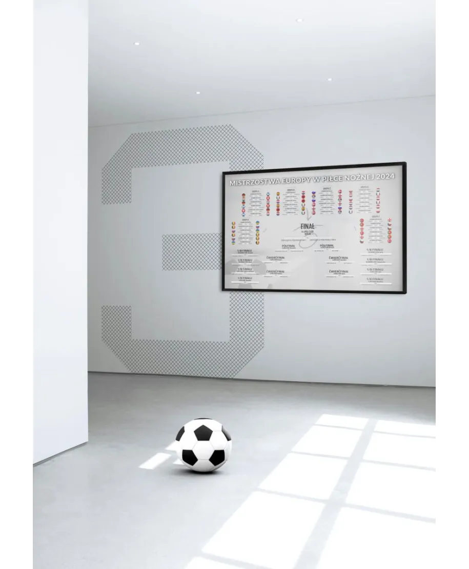 Tabela Euro 2024 terminarz rozgrywek na plakacie Plakat z tabelą rozgrywek wszystkich 51 meczy na EURO 2024, które odbędzie się w Niemczech. Pierwszy mecz rozegra się 14 czerwca na Stadionie Allianz Arena w Monachium. Reprezentacja Polski ma przed sobą 3 mecze w grupie D: Polska – Holandia, 16 czerwca o 15:00 Polska – Austria, 21 czerwca o 18:00 Polska – Francja, 25 czerwca o 18:00 Szczegóły techniczne: Gramatura papieru: 200g/m2. Wymiary tabeli: 70x50 cm. Druk: cyfrowy Marka: Nice Wall