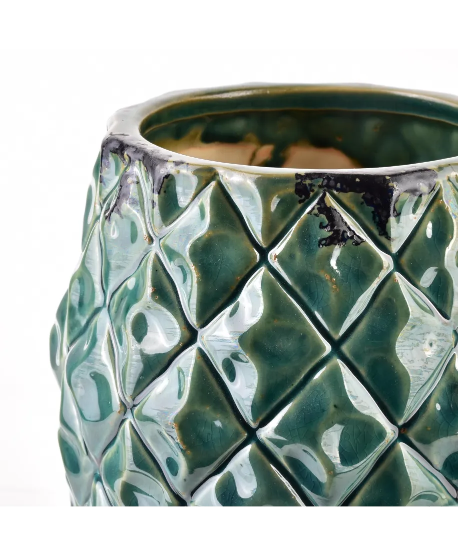 Szukasz wyjątkowego elementu dekoracyjnego, który naprawdę podkreśli atmosferę\twojej przestrzeni życiowej? Nie szukaj dalej niż ten piękny ceramiczny wazon!\Idealny do przechowywania bukietu świeżych kwiatów, ten jedyny w swoim rodzaju\wazon z pewnością doda odrobinę klasy i wyrafinowania do każdego wystroju.\Charakteryzuje się on całkowicie unikalnym designem i wyjątkową teksturą, która\naprawdę rzuca się w oczy. Jego bogactwo i misterne rzemiosło zapewniają mnóstwo\wizualnego zainteresowania z pewnością zwróci na siebie uwagę! Pomimo\przyciągającego wzrok piękna, niestety nie jest mrozoodporny - więc trzymaj go z\dala od zimowych chłodów! Teraz możesz wydobyć swojego wewnętrznego entuzjastę\kwiatów dzięki temu wspaniałemu ceramicznemu wazonowi w swoim domu.\\wymiary: 15,5x15,5xh15,5cm\waga:1,25kg\kolekcja: TAMANI GREEN\zapakowany jednostkowo w brązowy karton 16x16xh26cm\