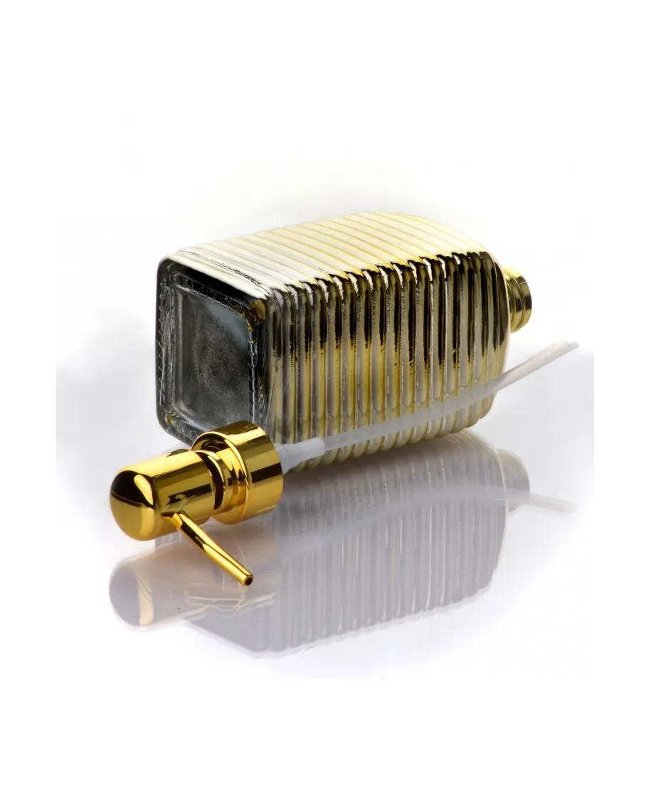 Szklany dozownik z serii TESSA marki BATHLAB by MONDEX w kolorze złotym. Posiada złotą pompkę która ułatwia wydobycie się mydła na zewnątrz. Dozownik na mydło w płynie TESSA Gold cechuje się dokładnym wykonaniem. Idealny wybór dla osób szukających użytecznych produktów cechującymi elementy dekoracyjne łazienek. Srebrny kolor dozownika sprawi, że każde wnętrze zacznie prezentować się szykownie i elegancko.