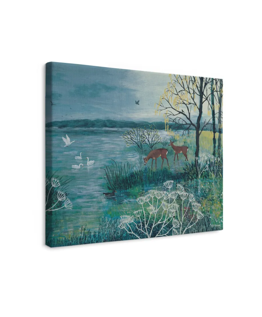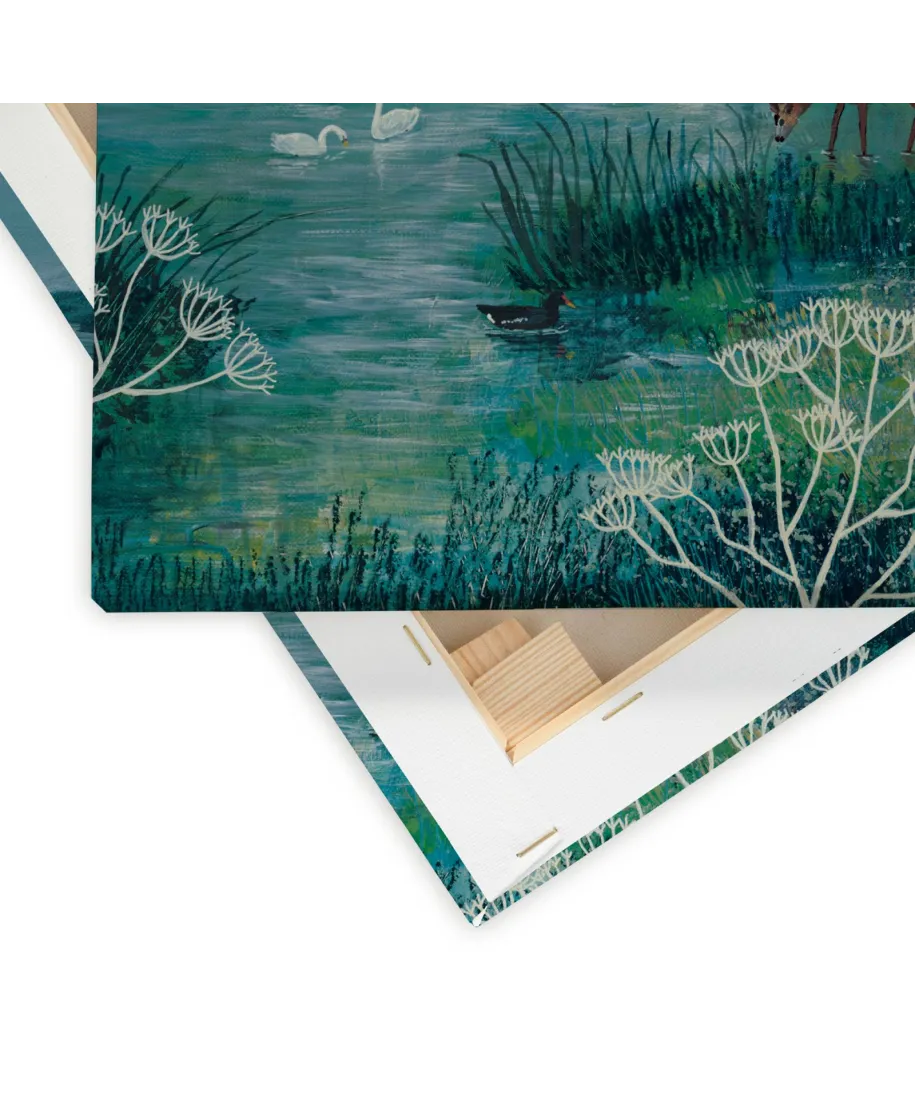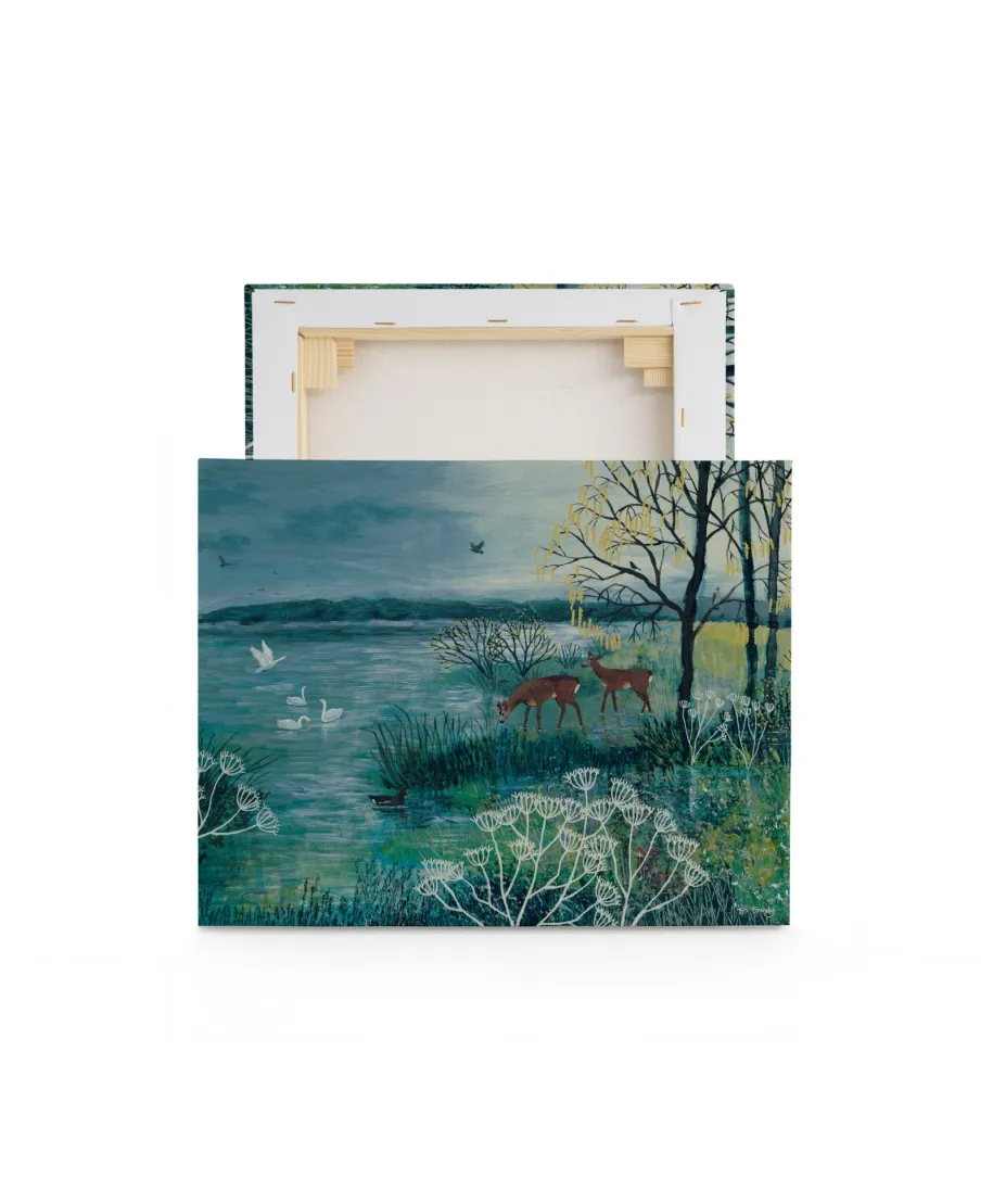 The Enchanted Lake - obraz na płótnie Naciągnięty na sosnowe krosna. Gotowy do zawieszenia na ścianę. Wykonany z najwyższą dbałością o detale. Obraz jest ostry a barwy nasycone. Ten egzemplarz posiada zadrukowane boki, nie trzeba go dodatkowo oprawiać. Płótno bawełniane na który został naniesiony obraz jest bardzo mocne i posiada ciekawą fakturę. Blejtrama wykonana jest natomiast z grubego drzewa sosnowego. Jest solidna, jej szerokość to 3,5 cm a grubość 2 cm. Kupując ten produkt masz pewność, że kupujesz z legalnego źródła i wspierasz artystów. Obraz jest oryginalny i posiada licencję. Lubisz wyróżniać się ciekawymi, ekskluzywnymi dekoracjami na ścianę? Ten obraz jest idealny dla Ciebie. Nikt nie przejdzie obojętnie obok niego, jest po prostu piękny. Dane techniczne: Płótno bawełniane 300g/m2. Sosnowe krosnao grubości 2 cm i szerokości 3,5 cm. Obraz zadrukowany cyfrowo. Wymiary obrazu 50x40 cm. Marka: Art Group