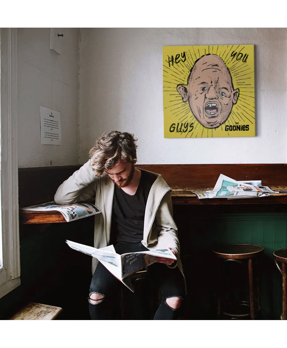 The Goonies Hey You Guys - obraz na płótnie Oryginalny i licencjonowany obraz na płótnie idealny na każdą ścianę. Nasze obrazy wyróżniają: Fantastyczne barwy Wysokie nasycenie barw i ostrość, kolory utrzymują się przez długie lata. Płótno wysokiej jakości Płótno bawełniane 300g/m2 jest trwałe i mocne, jego struktura jest naturalna. Trwałe kolory, Dodatkowo lakierowana powierzchnia sprawia, że kolory są żywe przez dziesięciolecia. Solidna rama, Wykonana jest z naturalnego, sosnowego drewna, jest mocna i gruba a obraz solidny i wytrzymały. Zadrukowane boki, obrazy posiadają zadrukowane boki, nie potrzebują żadnej dodatkowej oprawy. Szczegóły techniczne: wydruk na płótnie bawełnianym 300g/m2 sosnowe krosna o grubości 2 cm i szerokości 3,5 cm druk cyfrowy