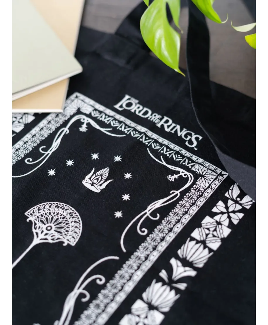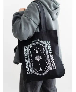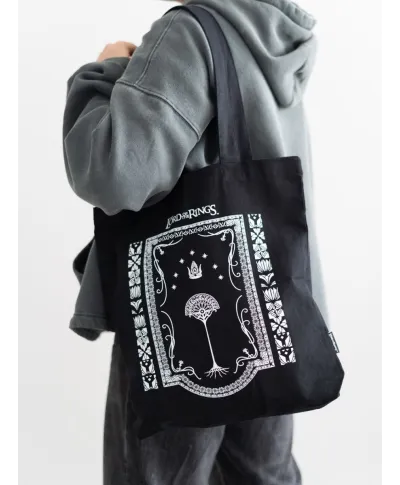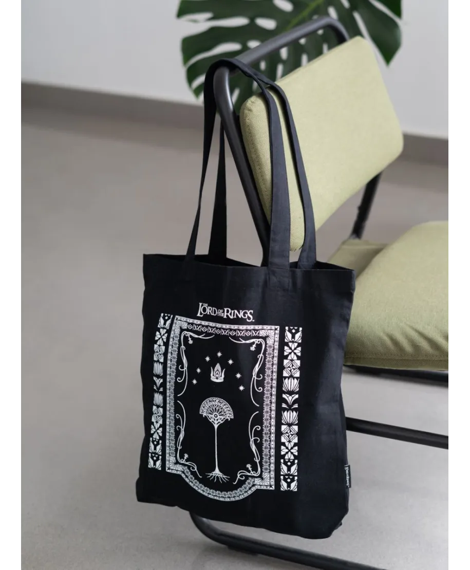 The Lord Of The Rings Gondor - torba bawełniana Bawełniana torba z motywem Gondoru, idealna dla fanów "Władcy Pierścieni". Wykonana z wysokiej jakości bawełny, jest trwała i wygodna w codziennym użytkowaniu. Doskonała do noszenia na ramieniu, torba jest lekka, ale jednocześnie pojemna, co sprawia, że sprawdzi się zarówno podczas zakupów, jak i w codziennym użytku. Jej elegancki design z kultowym symbolem Gondoru na froncie przyciąga uwagę każdego fana fantastyki. Szczegóły techniczne Wymiary: 37 x 37 x 5,5 cm Materiał: 100% bawełna Kolor: biały z nadrukiem Gondoru Licencjonowany produkt Oryginalny, licencjonowany produkt na podstawie "Władcy Pierścieni". Świetny wybór na prezent dla fanów tej epickiej serii.
