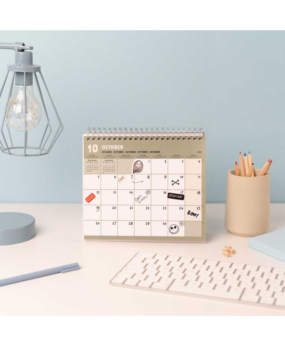 The Nightmare Before Christmas - biurkowy kalendarz 2026 Numer katalogowy: CS26013 Producent: Erik Kalendarz biurkowy The Nightmare Before Christmas 2026 od Erik to idealny dodatek dla fanów filmów Tima Burtona. Każdy miesiąc zdobi grafika inspirowana światem Jacka Skellingtona i Sally. Format 20x17 cm, spiralna oprawa i stojąca podstawa zapewniają wygodę użytkowania. Wykonany z papieru z certyfikatem FSC, łączy funkcjonalność z artystycznym stylem. Doskonały pomysł na prezent dla miłośników gotyckiej estetyki i kultowego filmu animowanego. Nagłówki są w 6 językach: angielskim, hiszpańskim, francuski, niemiecki, włoski, portugalski. Szczegóły techniczne Format: 20x17 cm Rok: 2026 Materiał: papier FSC Układ: miesięczny Oprawa: spiralna ze stojakiem Motyw: The Nightmare Before Christmas Producent: Erik Oryginalny produkt na oficjalnej licencji Disney Tim Burton, wyprodukowany przez Erik.