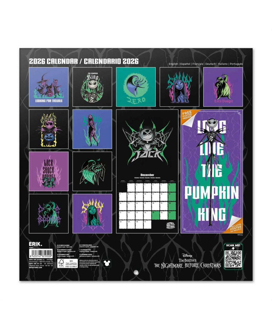 Disney The Nightmare Before Christmas oficjalny kalendarz na ścianę na 2026rok Oryginalny i licencjonowany kalendarz, posiada 12 rozkładanych stron o wymiarach 30x60 cm. Na każdej z kart znajduje się duża fotografiaoraz czytelne kalendarium z miejscem na notatki. W kalendarzu znajduje się 12 unikalnych zdjęć dla każdego miesiąca + plakat. Okładki wykonane są z papieru powlekanego matowego i laminowanego o gramaturze 250 g/m2, wnętrze z papieru powlekanego matowego o gramaturze 150 g/m2. Nagłówki są w 6 językach:angielski, hiszpański, francuski, włoski, niemiecki i portugalski. Oprawa zszywkowa. Złożony kalendarz 30x30 cm. Rozłożony kalendarz 30x60 cm. Zawiera otwór 5 mm do zawieszenia na ścianie.