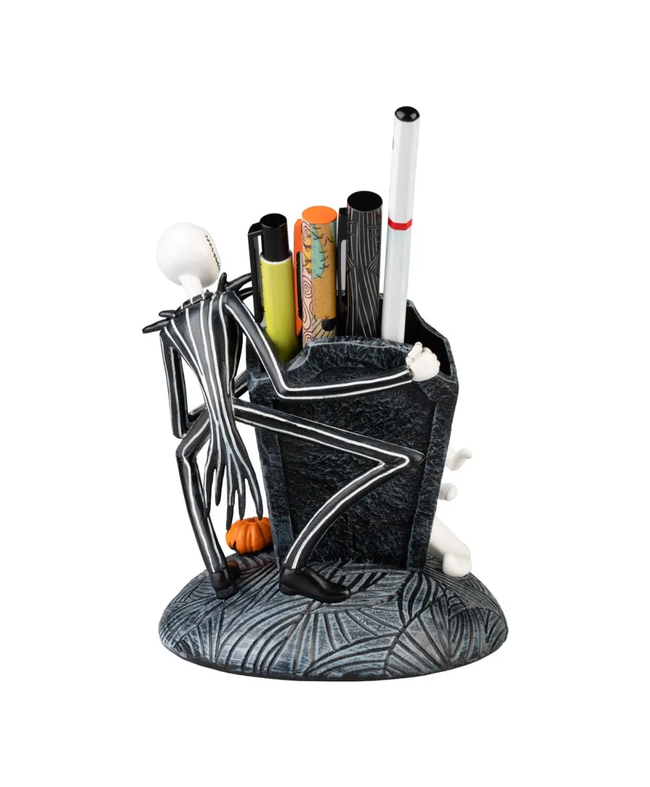 The Nightmare Before Christmas pojemnik z przyborami Ręcznie malowany pojemnik z żywicy z motywem "Miasteczka Halloween", zawierający zestaw do pisania idealny gadżet dla fanów animacji Tima Burtona. Szczegóły techniczne Wymiary pojemnika: 13 x 14 x 13 cm Materiał: żywica, ręcznie malowana Zawartość: 2 długopisy (czarny i niebieski), ołówek, temperówka, gumka Motyw: The Nightmare Before Christmas Oryginalny, licencjonowany produkt gwarancja autentyczności i wysokiej jakości.