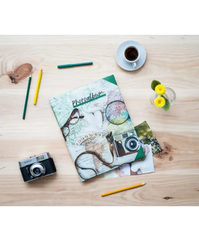 Album na zdjęcia Travel Vintage Oryginalny album na zdjęcia w twardej okładce.Posiada wyklejone taśmą samoprzylepnąstrony. Okładka zadrukowanajest kolorową grafiką. Album posiada 30 stron na których możesz umieścić maksymalnie 120 zdjęć. Zobacz możliwe konfiguracje: 120 zdjęć - 4 pionowe10x15 cmna każdej ze stron, 90 zdjęć - 3 poziome10x15 cmna każdej ze stron, 60 zdjęć - 2 poziome13x18 cmna każdej ze stron, 30 zdjęć 1 pionowe13x18 cmna każdej ze stron, 60 zdjęć - 2 poziome15x21cmna każdej ze stron, 30 zdjęć - 1 pionowe15x21 cmna każdej ze stron, 30 dużych zdjęć do maks. wymiaru24x32 cmlubINSTAX,POLAROID Szczegóły techniczne: Wymiary zewnętrzne: 26x33 cm Wymiary strony:24x32 cm Okładka: twarda, papierowa Karty: twarde, papierowe Rodzaj albumu: zdjęcia wklejane Wykończenie albumu: spirala Kolor kart: ecru