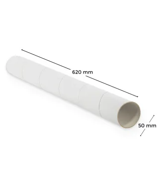 Tuba na plakat Maxi+ Biała tuba kartonowa przeznaczona do pakowania i wysyłki fototapet, rysunków, wydruków,plakatów, folii, tkanin. Wytrzymała i solidna, została wykonana z trwałej masy papierowej. Nadaje się do wysyłki dużych, zrolowanych materiałów. Łatwa do przenoszenia i składowania. Specyfikacja techniczna: Średnica: 70 mm Wysokość: 1330 mm Grubość tektury: 2 mm