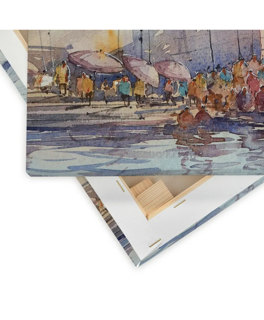 Varanashi Ghat, India - obraz na płótnie Naciągnięty na sosnowe krosna. Gotowy do zawieszenia na ścianę. Wykonany z najwyższą dbałością o detale. Obraz jest ostry a barwy nasycone. Ten egzemplarz posiada zadrukowane boki, nie trzeba go dodatkowo oprawiać. Płótno bawełniane na który został naniesiony obraz jest bardzo mocne i posiada ciekawą fakturę. Blejtrama wykonana jest natomiast z grubego drzewa sosnowego. Jest solidna, jej szerokość to 3,5 cm a grubość 2 cm. Kupując ten produkt masz pewność, że kupujesz z legalnego źródła i wspierasz artystów. Obraz jest oryginalny i posiada licencję. Lubisz wyróżniać się ciekawymi, ekskluzywnymi dekoracjami na ścianę? Ten obraz jest idealny dla Ciebie. Nikt nie przejdzie obojętnie obok niego, jest po prostu piękny. Dane techniczne: Płótno bawełniane 300g/m2. Sosnowe krosnao grubości 2 cm i szerokości 3,5 cm. Obraz zadrukowany cyfrowo. Wymiary obrazu 40x50 cm. Marka: Art Group
