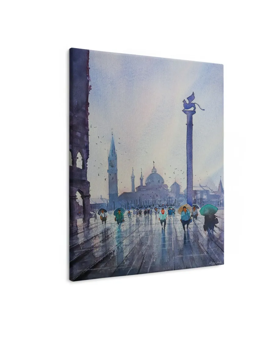 Venice After Rain - obraz na płótnie Naciągnięty na sosnowe krosna. Gotowy do zawieszenia na ścianę. Wykonany z najwyższą dbałością o detale. Obraz jest ostry a barwy nasycone. Ten egzemplarz posiada zadrukowane boki, nie trzeba go dodatkowo oprawiać. Płótno bawełniane na który został naniesiony obraz jest bardzo mocne i posiada ciekawą fakturę. Blejtrama wykonana jest natomiast z grubego drzewa sosnowego. Jest solidna, jej szerokość to 3,5 cm a grubość 2 cm. Kupując ten produkt masz pewność, że kupujesz z legalnego źródła i wspierasz artystów. Obraz jest oryginalny i posiada licencję. Lubisz wyróżniać się ciekawymi, ekskluzywnymi dekoracjami na ścianę? Ten obraz jest idealny dla Ciebie. Nikt nie przejdzie obojętnie obok niego, jest po prostu piękny. Dane techniczne: Płótno bawełniane 300g/m2. Sosnowe krosnao grubości 2 cm i szerokości 3,5 cm. Obraz zadrukowany cyfrowo. Wymiary obrazu 60x80 cm. Marka: Art Group
