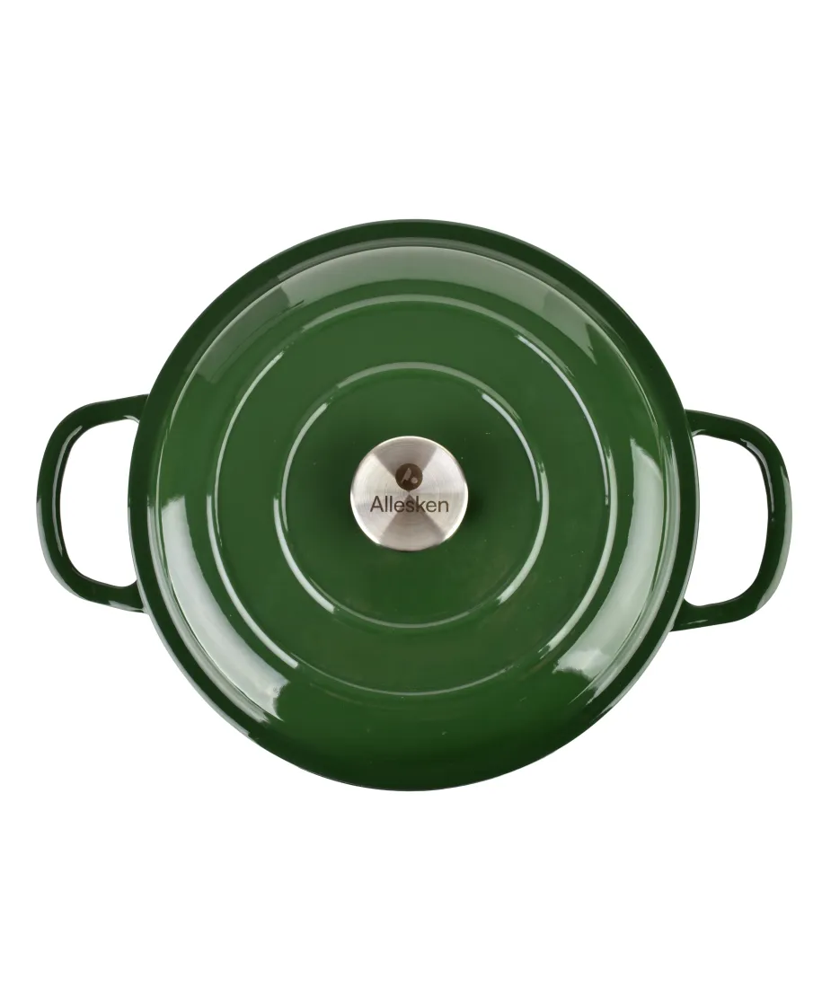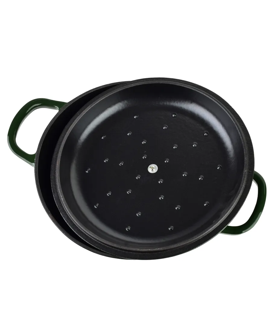 Gęsiarka żeliwna w kolorze zielonym z serii VERDELUXE to wysokiej jakości naczynie kuchenne, które jest idealne do przygotowywania różnorodnych potraw, w szczególności duszonych mięs, zapiekanek oraz pieczeni. Oto kilka cech charakterystycznych takiej gęsiarki: Materiał: Wykonana z solidnego żeliwa, które zapewnia równomierne rozprowadzanie ciepła oraz długotrwałe utrzymywanie temperatury. Kolor: Elegancki zielony kolor, który dodaje stylu każdej kuchni. Pokrywa: Żeliwna pokrywa zapewniająca szczelność oraz optymalne warunki do duszenia potraw. Rączki: Ergonomiczne uchwyty ułatwiające przenoszenie naczynia, nawet gdy jestgorące. Seria VERDELUXE: Charakteryzuje się wyjątkowym designem oraz najwyższą jakością wykonania. Takie naczynie jest nie tylko funkcjonalne, ale również stanowi piękny element wyposażenia kuchni. Idealne dla miłośników gotowania, którzy cenią sobie trwałość i estetykę swoich narzędzi kuchennych. wymiar: 26x26xh11cm z pokrywą pojemność: 2,4L waga:4,268kg zapakowana jednostkowo w color box: 29x32xh7cm