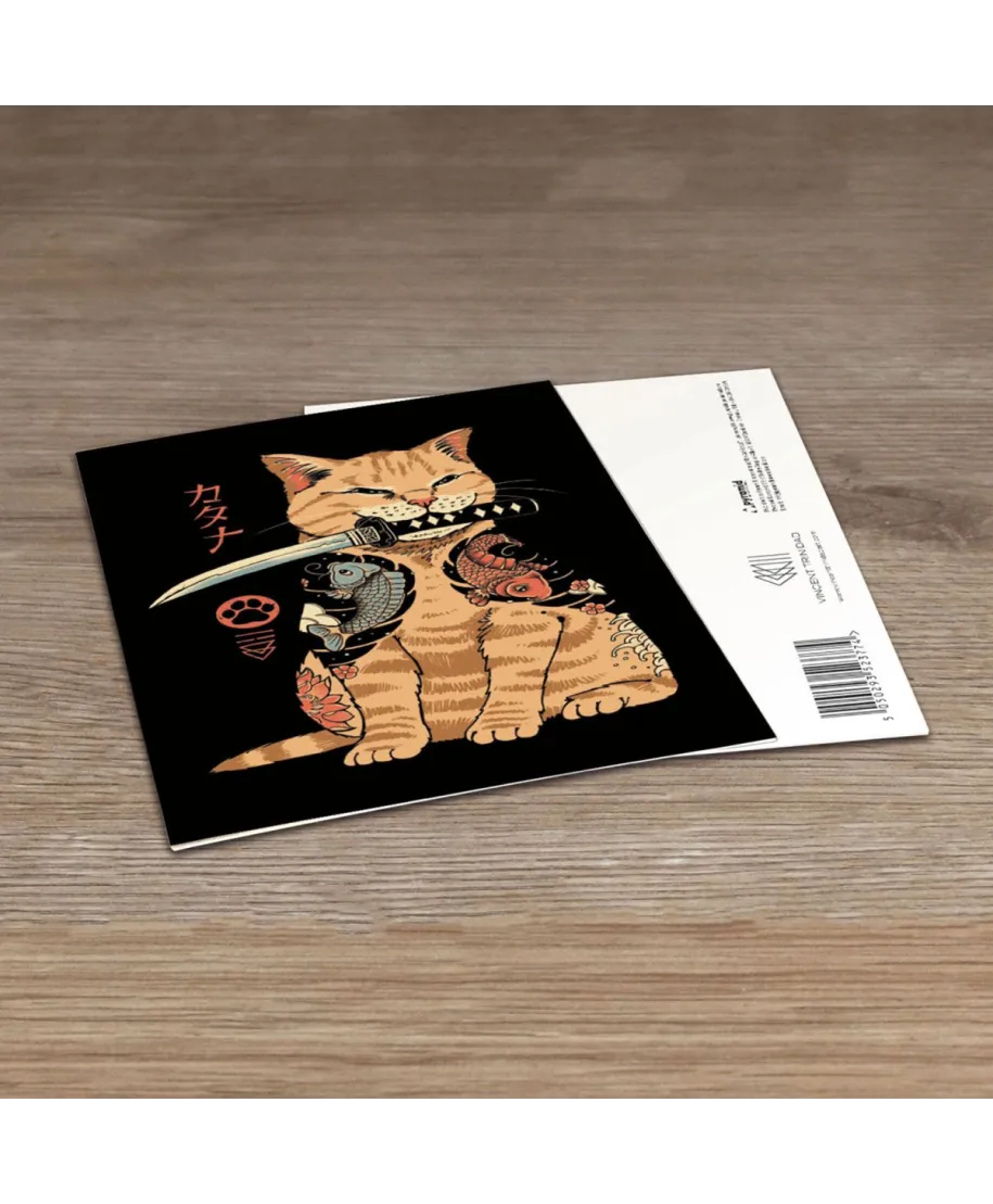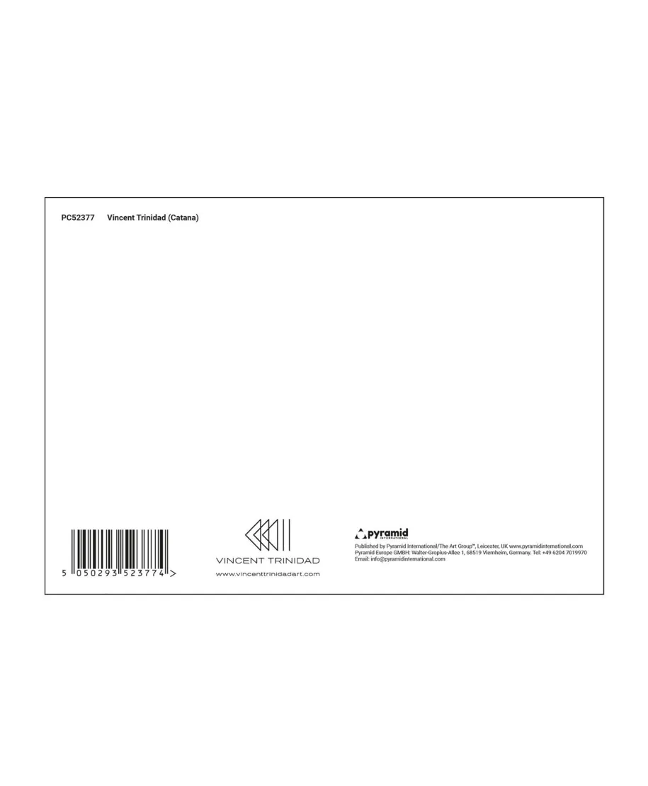 Vincent Trinidad Catana - pocztówka Wyjątkowa pocztówka z grafiką Vincenta Trinidada, ukazującą koty w stylu samurajskim. Zabawna i stylowa, doskonale łączy japońskie motywy z nowoczesnym podejściem. Idealna dla miłośników zwierząt, kultury Japonii i artystycznych projektów. Świetna do przesyłania wiadomości lub jako ozdoba kolekcji. Wysokiej jakości papier zapewnia trwałość produktu. Szczegóły techniczne: Wymiary: 14,8 x 10,5 cm Grafika Vincenta Trinidada Inspiracja japońskim stylem ukiyo-e Licencjonowany produkt: Oryginalna pocztówka, wspierająca artystę.