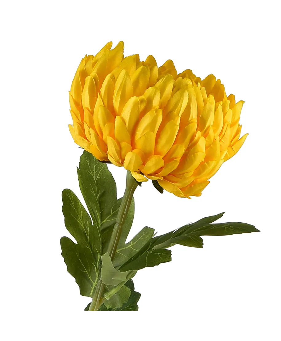 Zółty VIRIDIS . Kwiat sztuczny Chryzantema (gałązka 73x13 cm)Kwiat sztuczny Chryzantema z kolekcji VIRIDIS to elegancka dekoracja florystyczna, która idealnie imituje wygląd żywej rośliny. Wykonana z dbałością o detale, sprawia wrażenie autentyczności dzięki realistycznemu odwzorowaniu płatków i liści.Jest to gałązka o długości 73 cm i szerokości około 13 cm, zakończona dużym, puszystym kwiatostanem. Może stanowić samodzielny element dekoracyjny w wazonie, część bukietu lub kompozycji kwiatowej do wnętrz mieszkalnych, biur, hoteli czy miejsc pamięci.Materiały i wykonanieKwiat: wykonany z wysokiej jakości tkaniny syntetycznej, o delikatnej fakturze, która dobrze imituje strukturę płatków naturalnych chryzantem.Gałązka: elastyczny, powlekany drutem trzon, umożliwiający łatwe formowanie i dopasowanie do różnych aranżacji.Liście: zielone, tłoczone liście dodają roślinie naturalności i głębi.KolorystykaDostępna jest w różnych wariantach kolorystycznych . zazwyczaj w odcieniach:. bieli,. żółciKolory są zazwyczaj subtelne, lekko przygaszone, co sprawia, że kompozycje wyglądają elegancko i naturalnie.WymiaryWysokość całkowita: 73 cmSzerokość kwiatostanu: ok. 13.17 cm (w zależności od ułożenia płatków)Średnica główki kwiatowej: około 12.17 cmZastosowaniedekoracje do wazonów i naczyń ceramicznych,kompozycje florystyczne (np. na cmentarz lub do dekoracji ślubnych),ozdoby sezonowe (np. jesienne wianki),ekspozycje witryn sklepowych i wnętrz użytkowych.