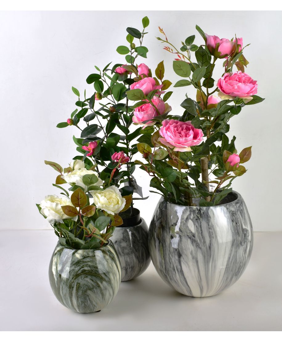 Sztuczny kwiat VIRIDIS róża to subtelna i elegancka dekoracja o wysokości 68 cm i wymiarach 13x13 cm. Wyróżnia się licznymi pąkami w odcieniach delikatnego różu, które nadają jej naturalny i romantyczny wygląd. Wykonana z wysokiej jakości tworzywa sztucznego, wiernie odwzorowuje strukturę i barwy prawdziwych róż, dzięki czemu stanowi efektowny akcent w każdym wnętrzu. Umieszczona jest w prostej, czarnej osłonce, która podkreśla intensywność koloru kwiatów i dodaje całości elegancji. Idealna do salonu, sypialni lub biura, wprowadza przyjemny akcent świeżości i koloru bez potrzeby pielęgnacji.