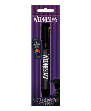 Wednesday Black Is My Happy Colour - długopis wielokolorowy Długopis z motywem Wednesday Addams to praktyczny i oryginalny dodatek szkolny. Zawiera 10 kolorowych wkładów, które sprawdzą się w nauce i notatkach. Idealny dla fanów serialu. Szczegóły techniczne: Ilość kolorów: 10 Materiał: wysokiej jakości tworzywo sztuczne Wymiary opakowania: 21 x 3 x 9 cm Licencjonowany produkt z serii Wednesday świetny pomysł na prezent dla nastolatków i fanów gotyckiego klimatu.