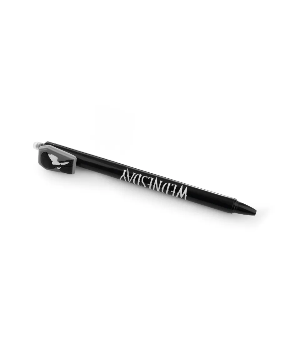 Długopis zmywalny Wednesday Braids Długopis z profilową grafiką Wednesday Addams i jej słynnymi warkoczami. Klikany, z niebieskim wkładem i gumką do ścierania dla fanów serialu i stylowego pisania. Szczegóły techniczne Wkład: niebieski Mechanizm: klik Końcówka: gumka Motyw: Wednesday z warkoczami Produkt licencjonowany kolekcja Wednesday.