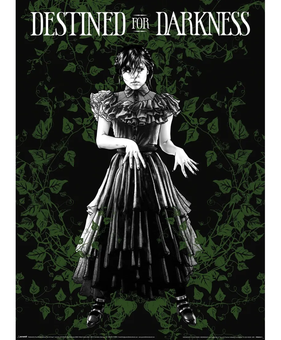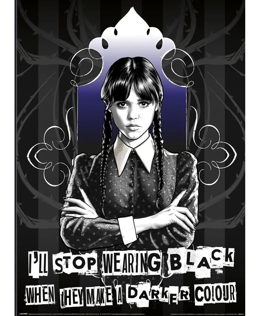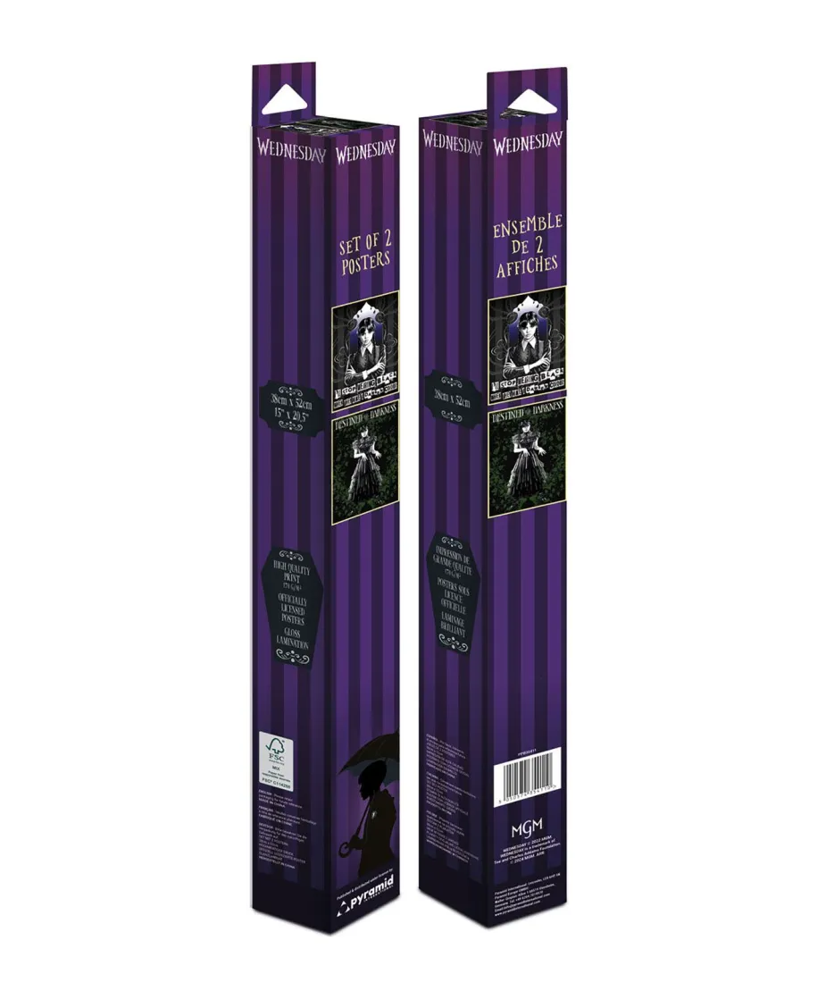 Wednesday Goth - zestaw 2 plakatów Zestaw dwóch plakatów inspirowanych serialem Wednesday, przedstawiających charakterystyczny gotycki styl głównej bohaterki. Wykonane z najwyższej jakości papieru, plakaty doskonale oddają detale i ciemne, nasycone barwy, tworząc unikatowy klimat. Każdy fan serialu z pewnością doceni taką dekorację w swoim pokoju, a ich stylowy design przyciągnie uwagę nawet osób nieznających tej produkcji. Szczegóły techniczne: Wymiary: 38 x 52 cm Materiał: papier wysokiej jakości Zestaw zawiera: 2 plakaty Licencjonowany produkt: Produkt oficjalny, posiadający licencję, co gwarantuje jego autentyczność i wysoką jakość wykonania.