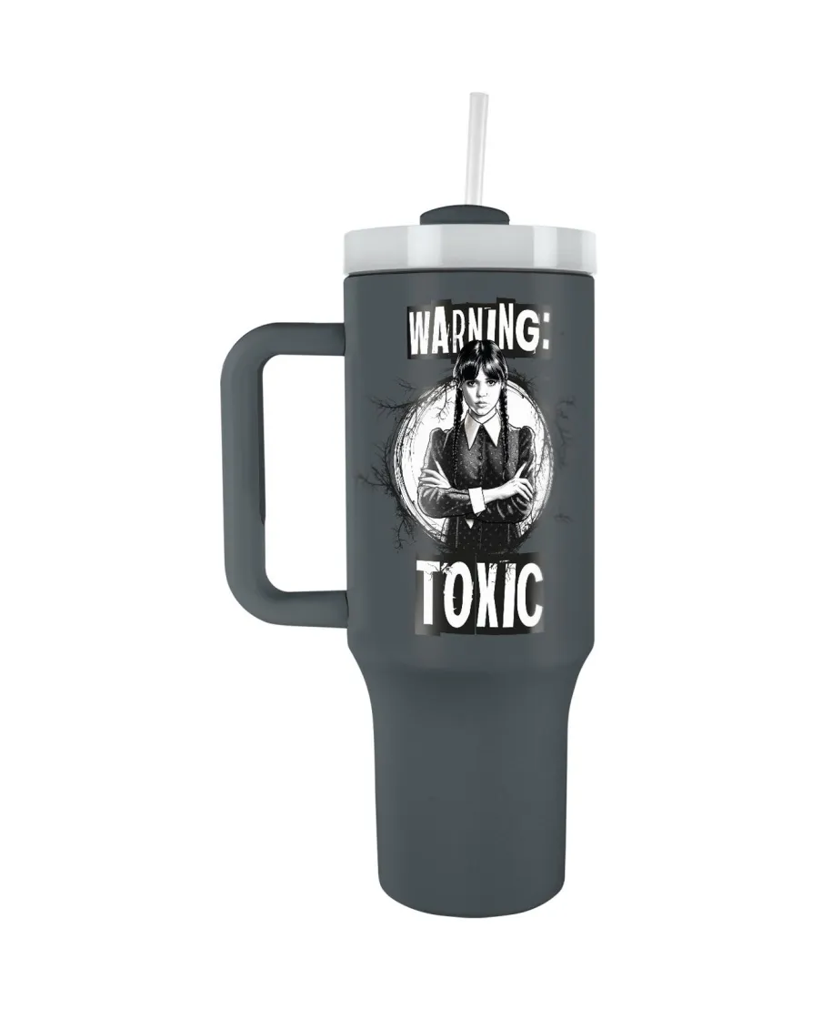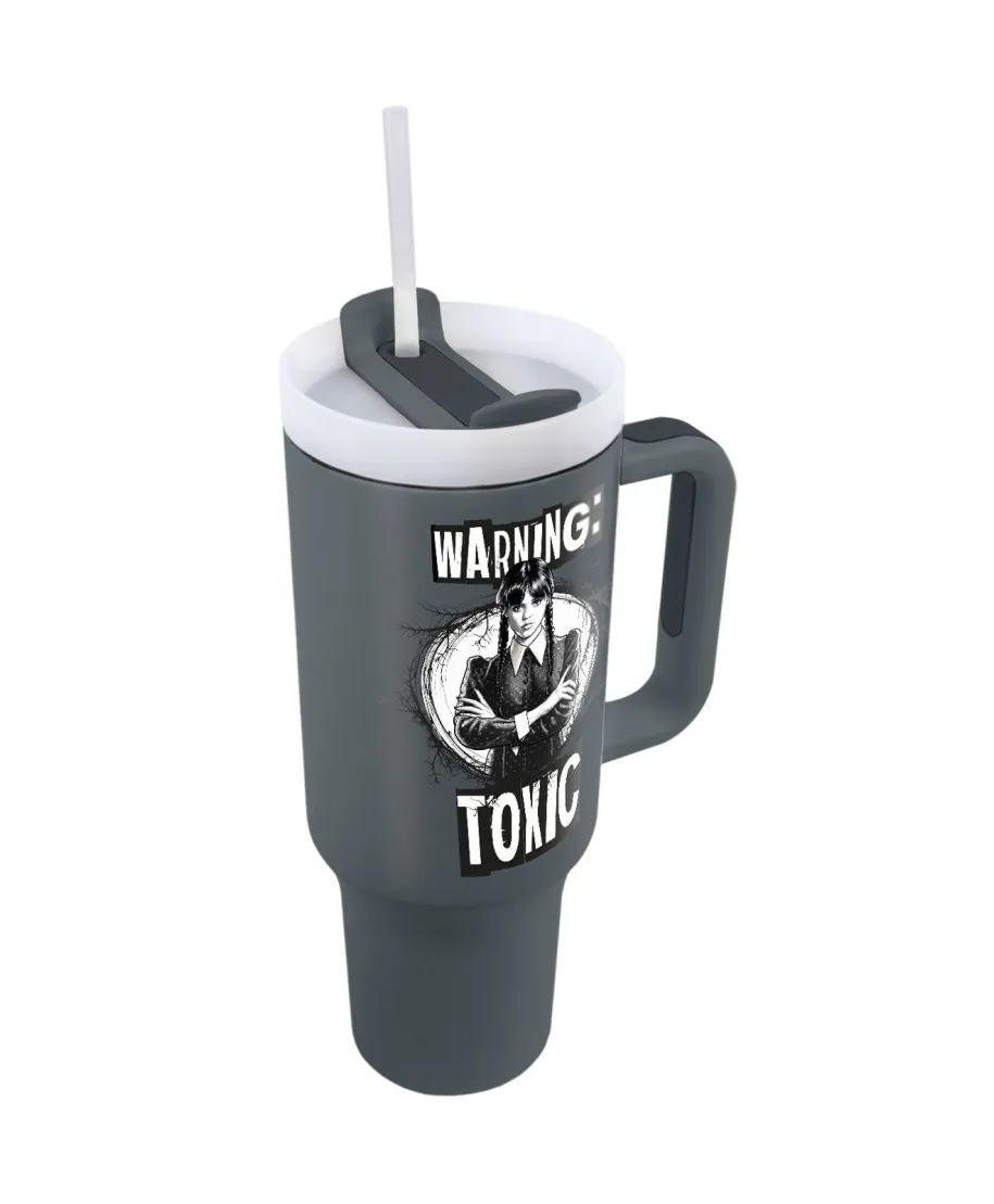 Wednesday - kubek termiczny z uchem Termiczny kubek inspirowany Wednesday. Pojemność 1140 ml, podwójne ścianki i trwały materiał czynią go idealnym wyborem na prezent lub jako dodatek do kolekcji. Szczegóły techniczne: Pojemność: 1140 ml Izolacja: Podwójne ścianki Materiał: Wysokiej jakości tworzywo Wzór: Wednesday Licencjonowany produkt Oryginalny produkt Netflix, idealny do sklepów z gadżetami i prezentami.