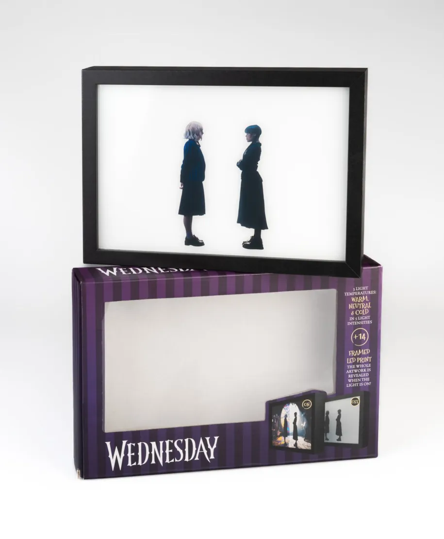 Podświetlana ramka LED Wednesday dekoracja z niespodzianką Ramka LED z motywem Wednesday to wyjątkowy element wystroju wnętrza, który odsłania całą scenę dopiero po włączeniu światła. Minimalistyczny design, 3 barwy światła i regulowane natężenie sprawiają, że produkt łączy styl i funkcjonalność. Świetna opcja jako dekoracja, lampka nocna lub oryginalny prezent. Szczegóły techniczne 3 poziomy intensywności światła 3 tryby barwy: ciepła, neutralna, zimna Efekt pełnego obrazu po zapaleniu LED Zasilanie: USB (kabel w zestawie) Wymiary: ok. 20x28x5 cm Licencjonowany produkt Produkt w pełni licencjonowany idealny dla fanów serialu "Wednesday".