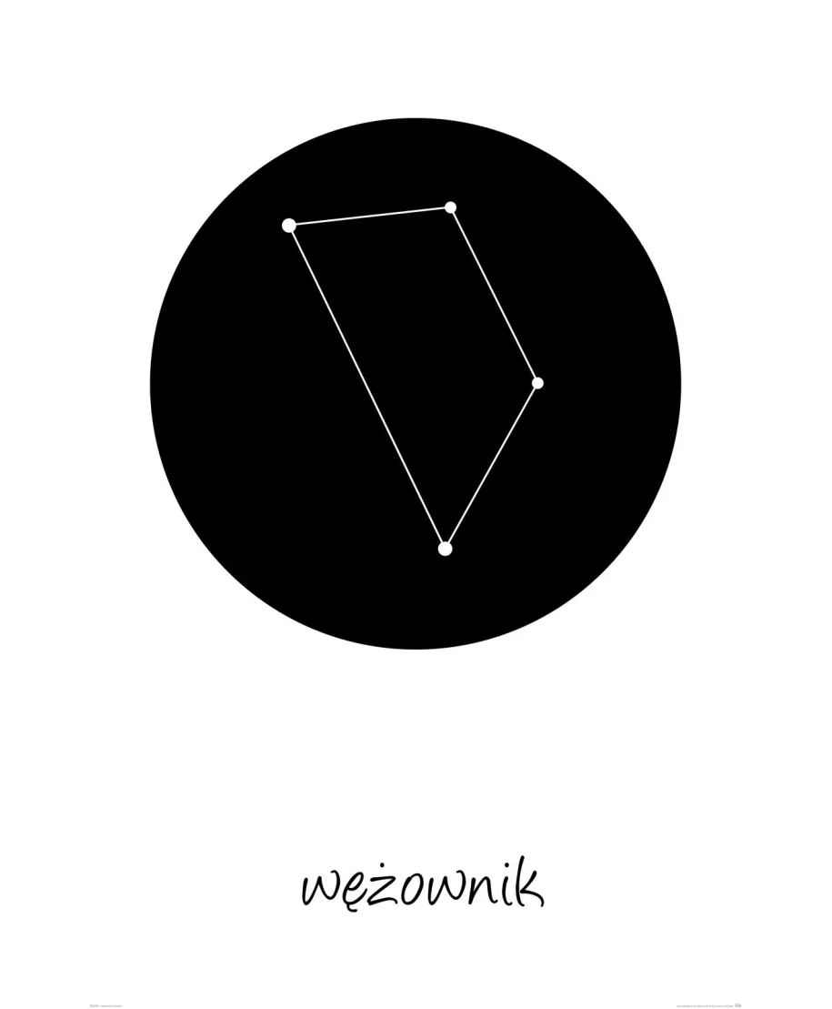 Plakat z mapą na ścianę, zatytułowany Wężownik konstelacja w kole Ciekawy i oryginalny plakat na ścianę. Wyprodukowany na papierze o wysokiej gramaturze w cyfrowej jakości. Plakat wykonany przez polskiego producenta. Świetnie nadaje się do oprawienia w ramy lub antyramy. Specyfikacja papier satynowy 220g/m2 druk cyfrowy wymiary plakatu 61x91,5 cm