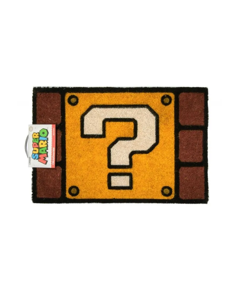 Wycieraczka Super Mario Question Mark Block Wycieraczka do butów z naturalnego włosia kokosowego. Zaskocz swoich gości tuż przy wejściu, wycieraczką z unikatowym motywem! Dobra wycieraczka ułatwia utrzymanie czystości w domu czy firmie. Lubisz markowe gadżety? Wycieraczki są oryginalne, to oficjalne, licencjonowane wydanie! Została podklejana gumą zapobiegającą poślizgowi. Szczegóły techniczne: rozmiar wycieraczki - 60x40 cm. wysokość 1,5cm.