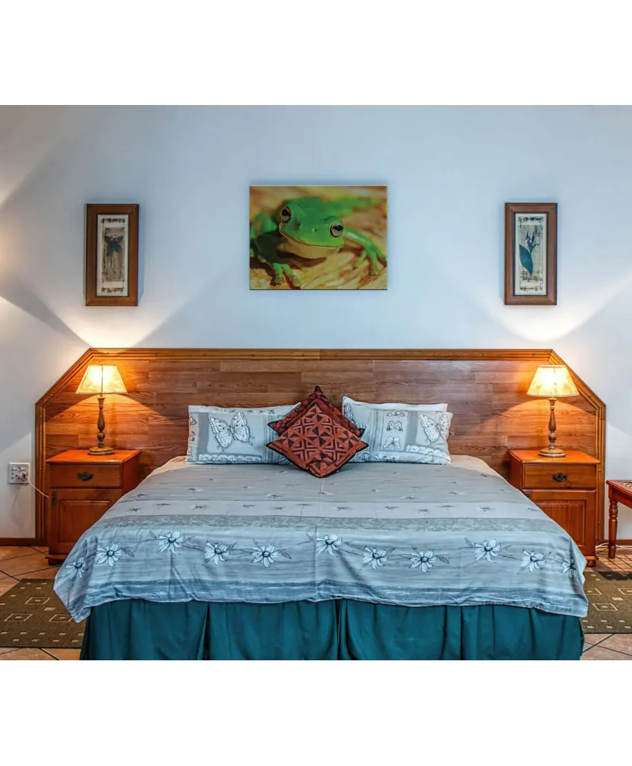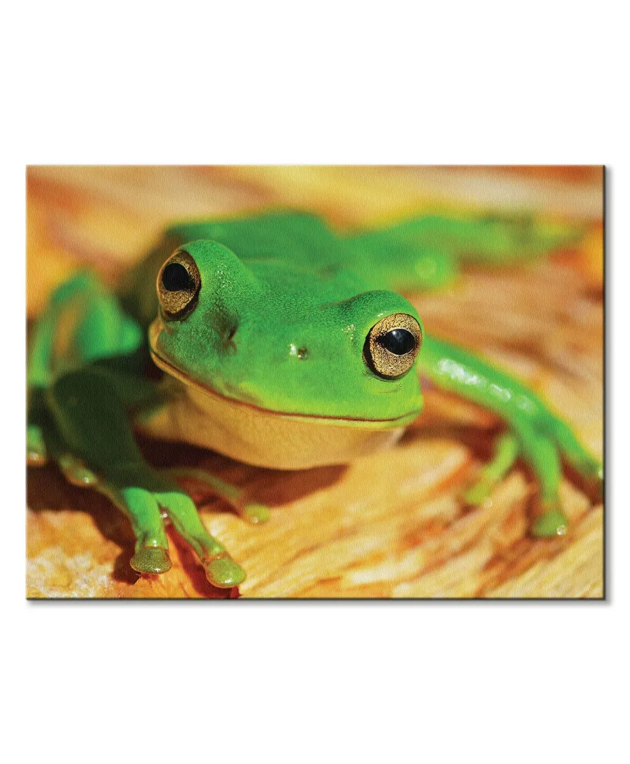 Oryginalny obraz na płótnieZielona Żaba Oryginalny i licencjonowany obraz na płótnie idealny na każdą ścianę. Nasze obrazy wyróżniają: Fantastyczne barwy Wysokie nasycenie barw i ostrość, kolory utrzymują się przez długie lata. Płótno wysokiej jakości Płótno poliestrowe 300g/m2 jest trwałe i mocne, jego struktura jest naturalna. Trwałe kolory, Dodatkowo lakierowana powierzchnia sprawia, że kolory są żywe przez dziesięciolecia. Solidna rama, Wykonana jest z naturalnego, sosnowego drewna, jest mocna i gruba a obraz solidny i wytrzymały. Zadrukowane boki, obrazy posiadają zadrukowane boki, nie potrzebują żadnej dodatkowej oprawy. Szczegóły techniczne: wydruk na płótnie poliestrowym 220g/m2 sosnowe krosna o grubości 2 cm i szerokości 3,5 cm druk cyfrowy